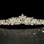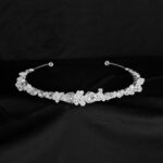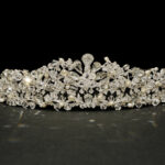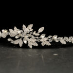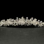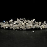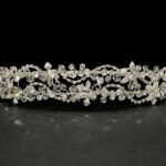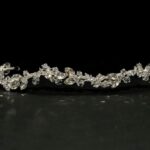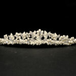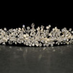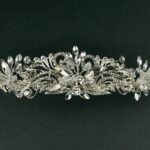 Full crystal & diamante silver tiara with accents of crystal clear building. Beautiful and botanical tiara set to add that organic sparkle to please your beautiful brides. |