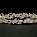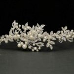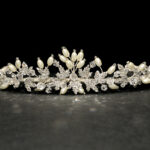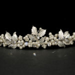 Botanical leaf details with diamante and pearls set in a medium size tiara. |