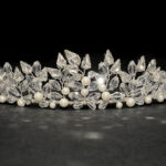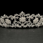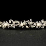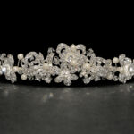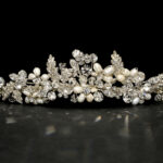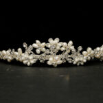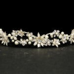 A Tiara detailed with crystals and diamante to create flower and leaf shapes. Also decorated with pearls.