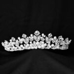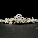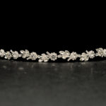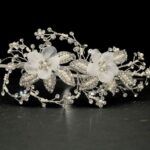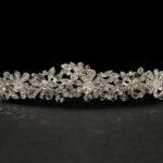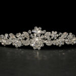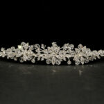 Delicate tiara, flowers in diamante and crystal beads, measuring 1.5″ at the highest point. |