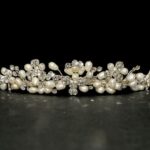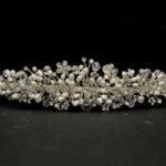 Elegant diamante tiara with scattered pearls , measures 2″ high |