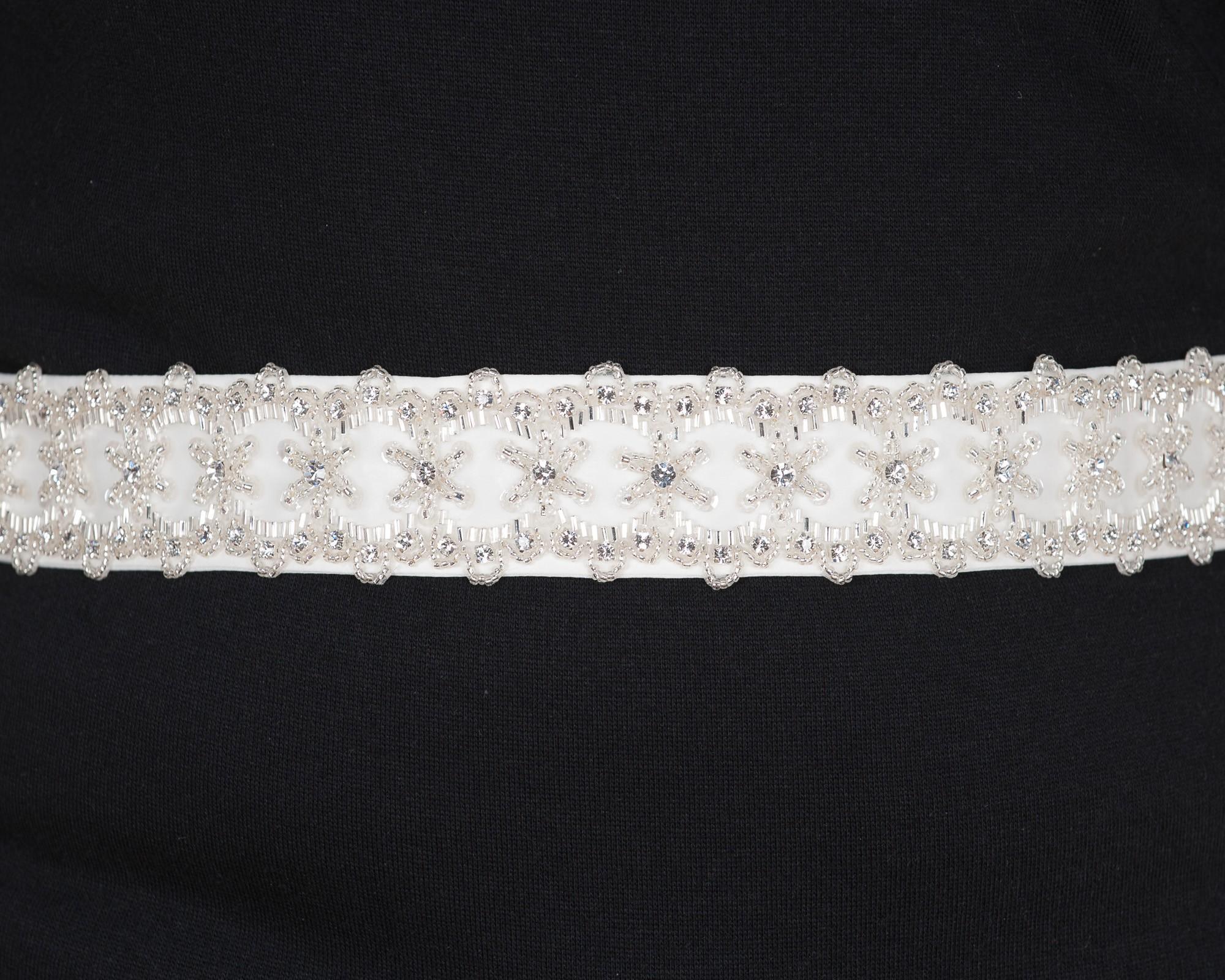 A Satin ribbon with a Diamante & Silver beading central detail.
