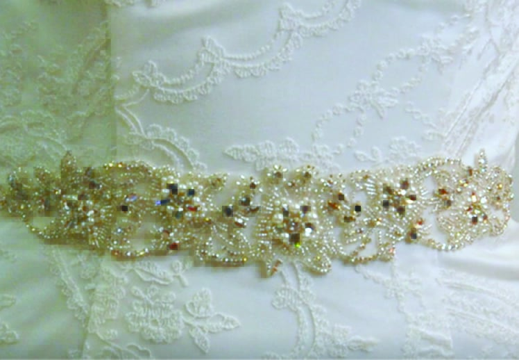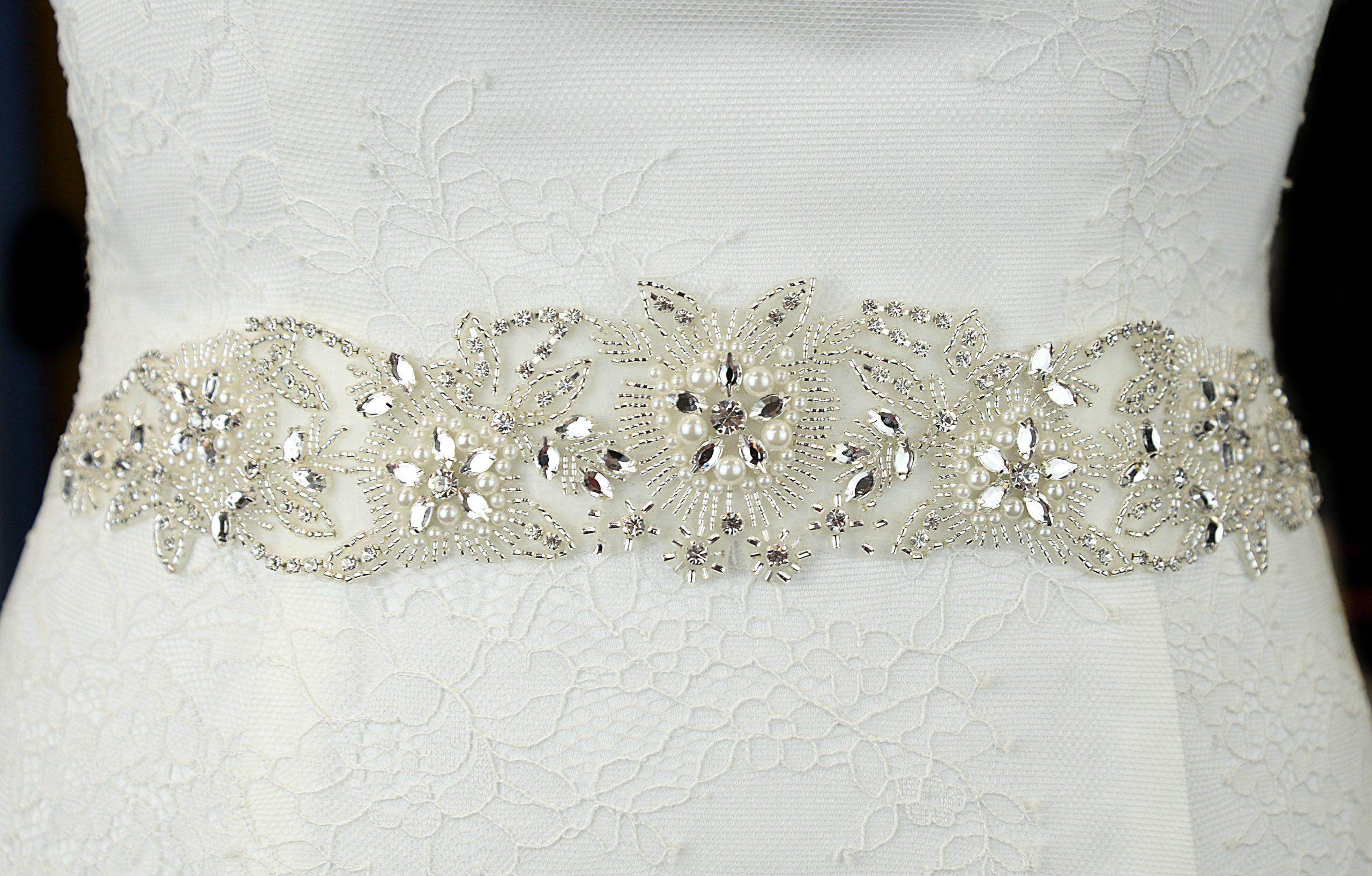 A Organza ribbon with a Diamante, Pearls & Beading central detail.