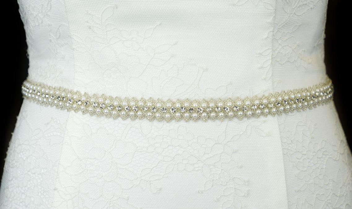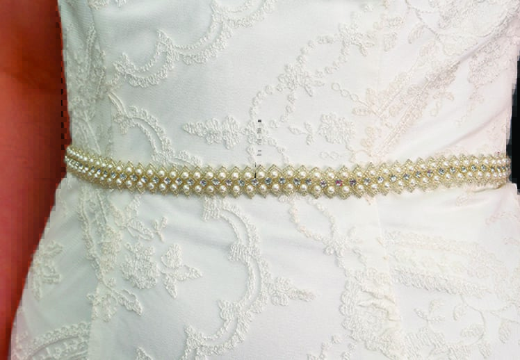Beautifully uniformed rows of diamante and pearls zigzag