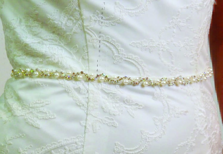 A small pearl & diamante belt, the perfect amount of sparkle for a more minimal bridal look.
