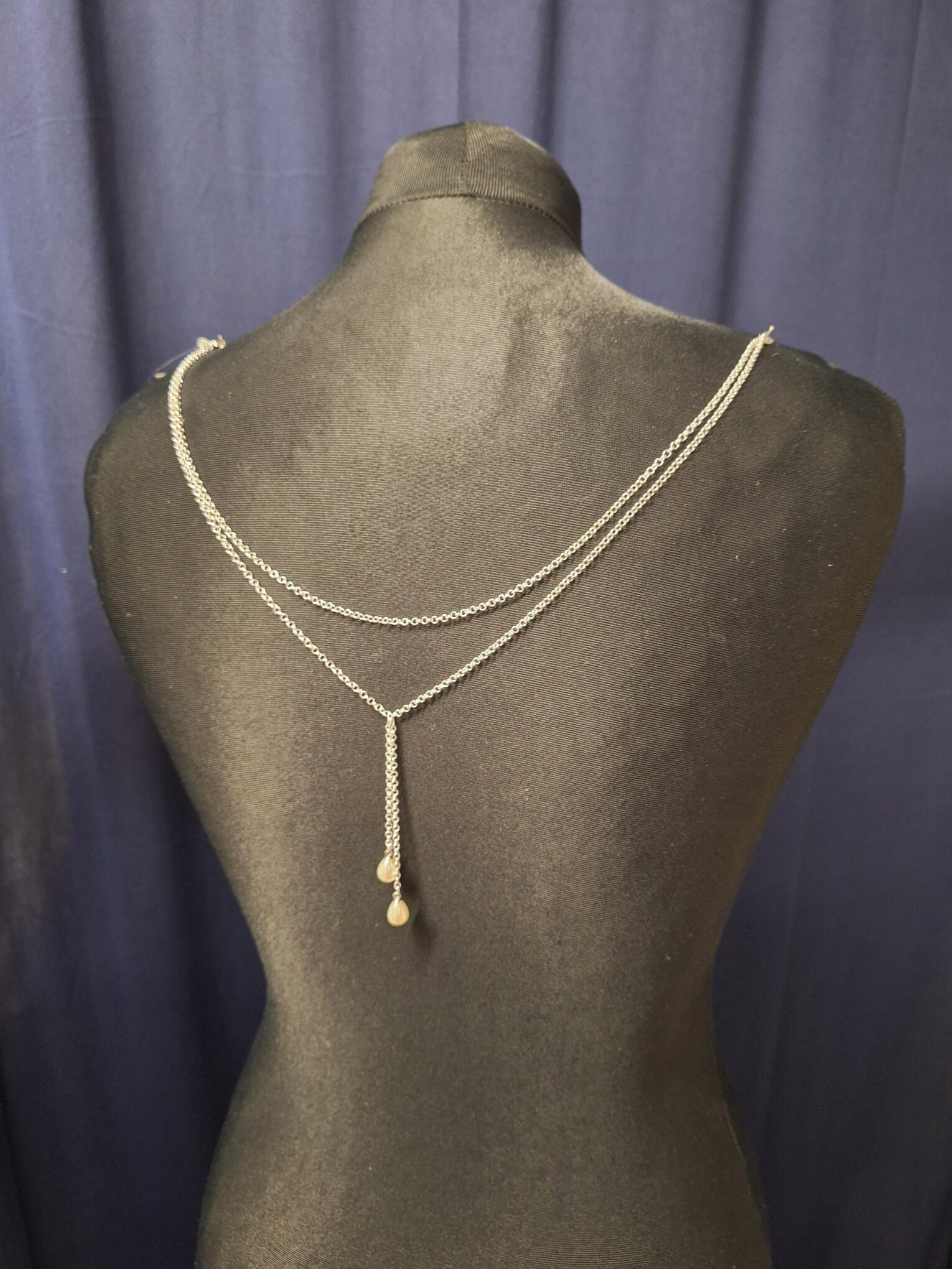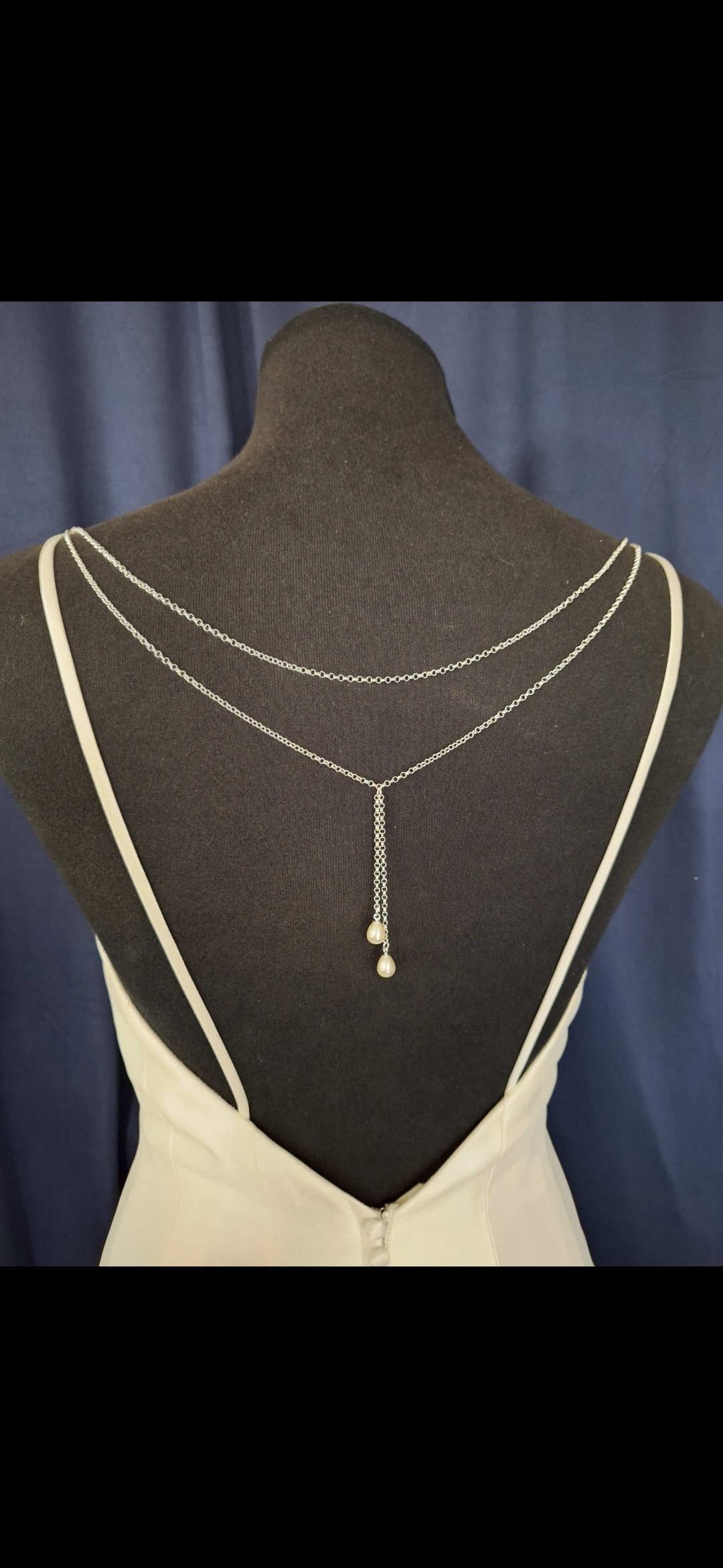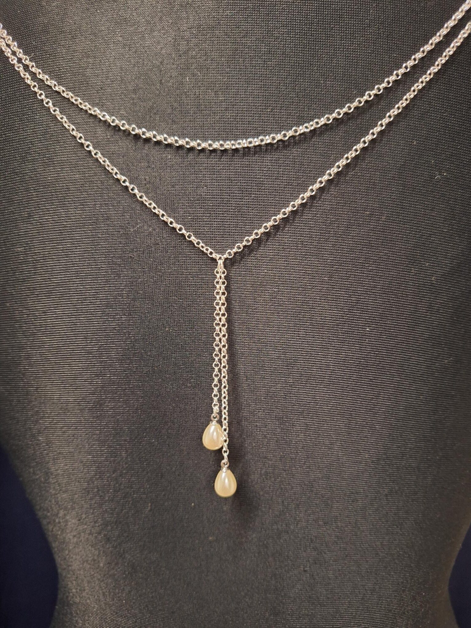 Stunning silver back necklace, with a delicate 2 piece pearl drop.