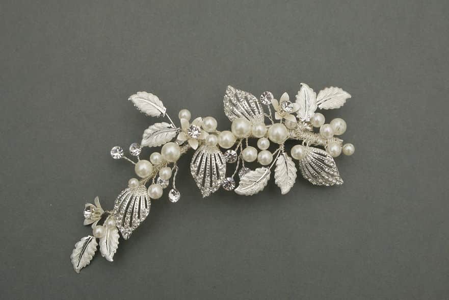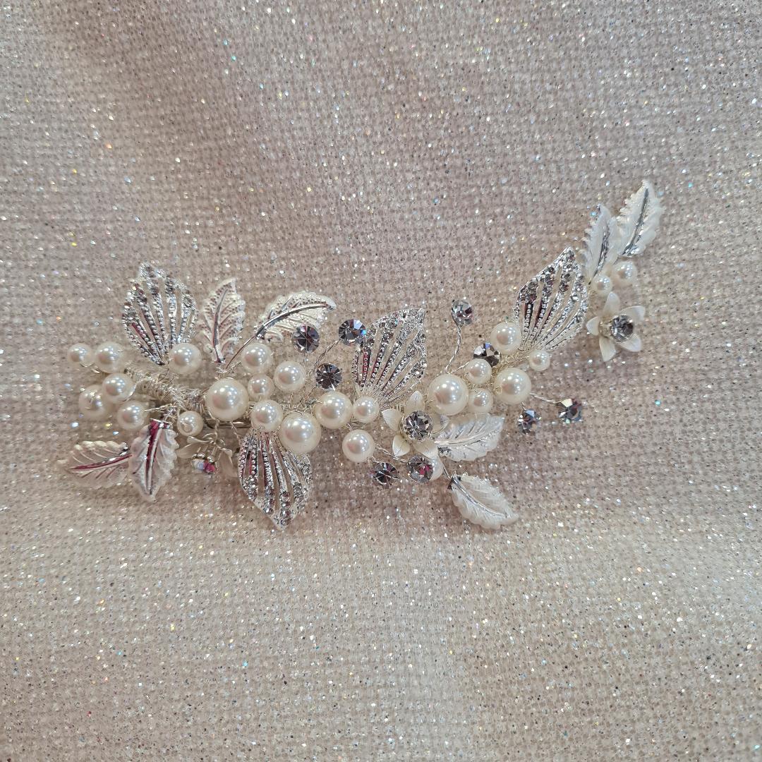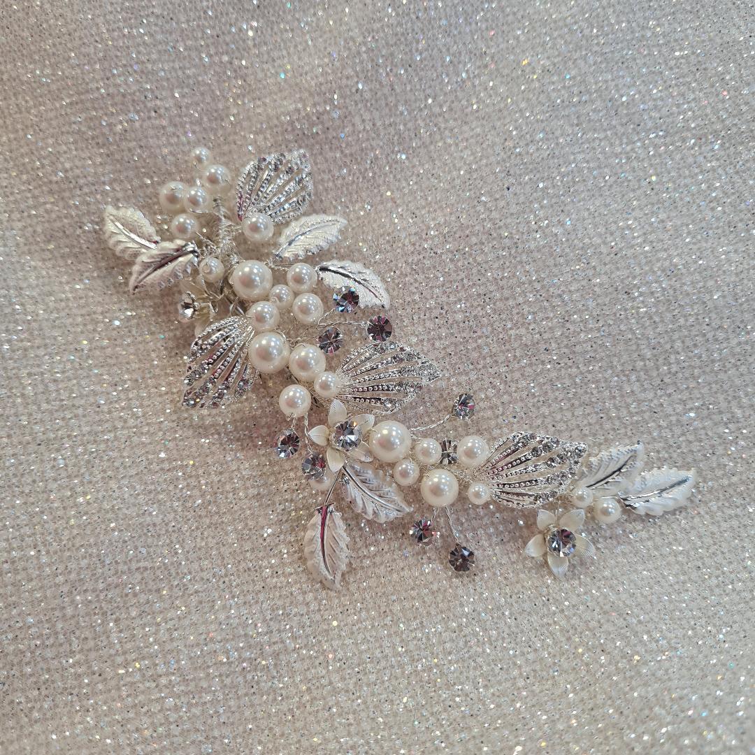 Crusted Pearl, diamante flower design with Filigree leaves