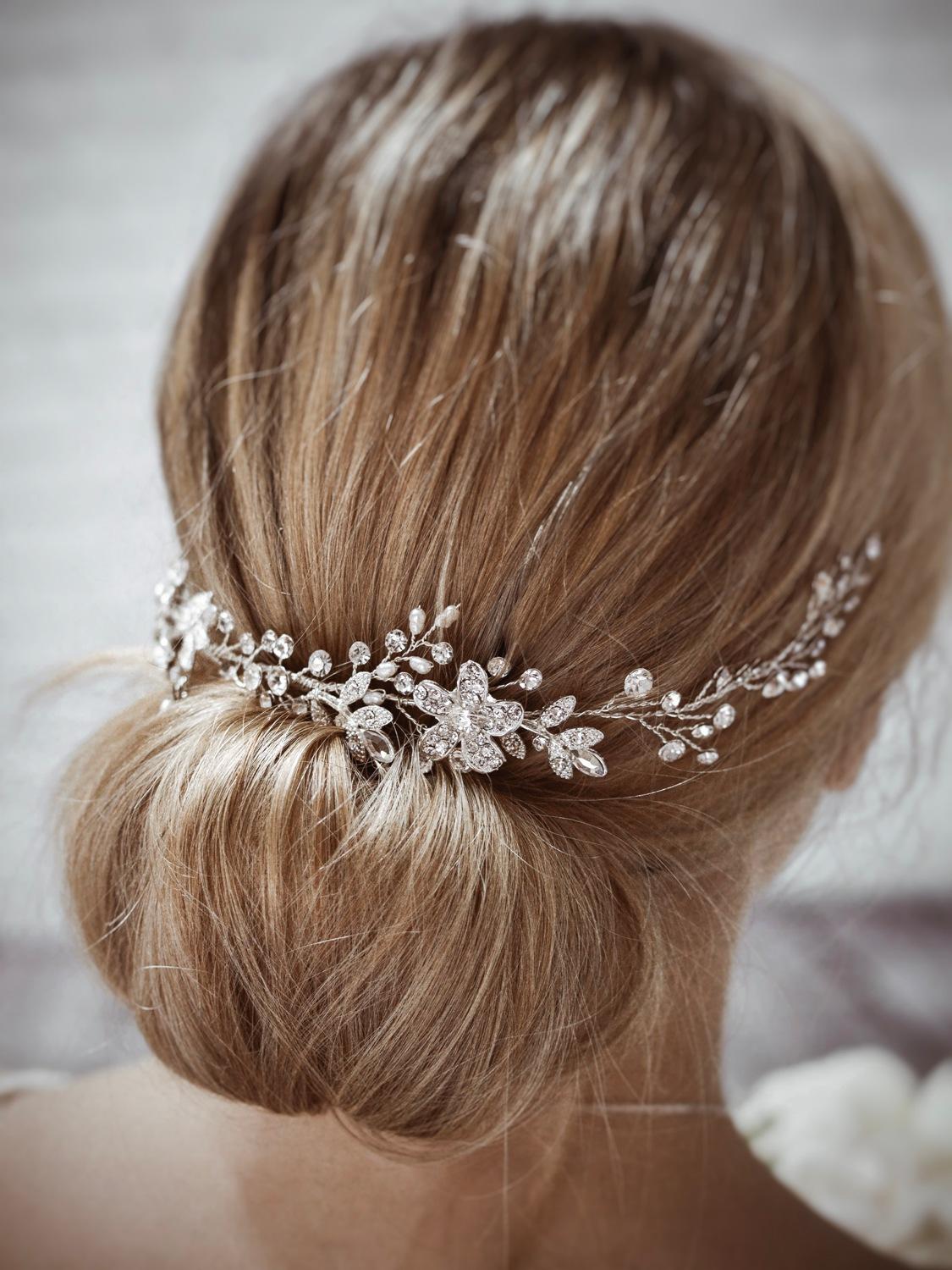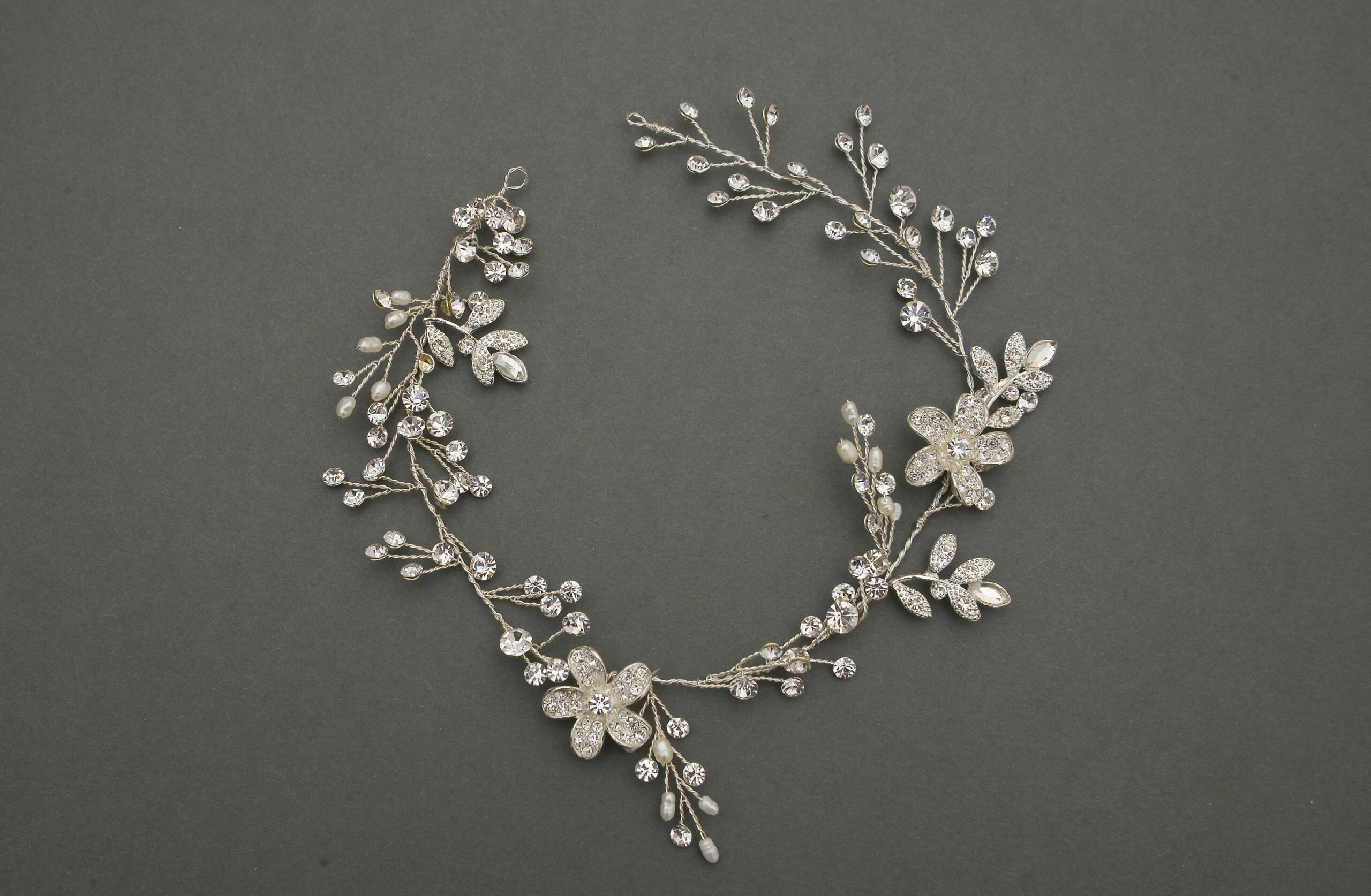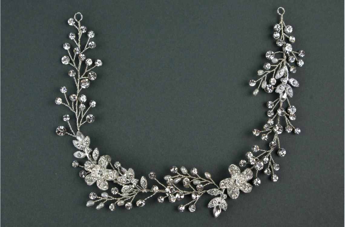Freshwater Pearls and Diamante Hair Accessory in Silver.