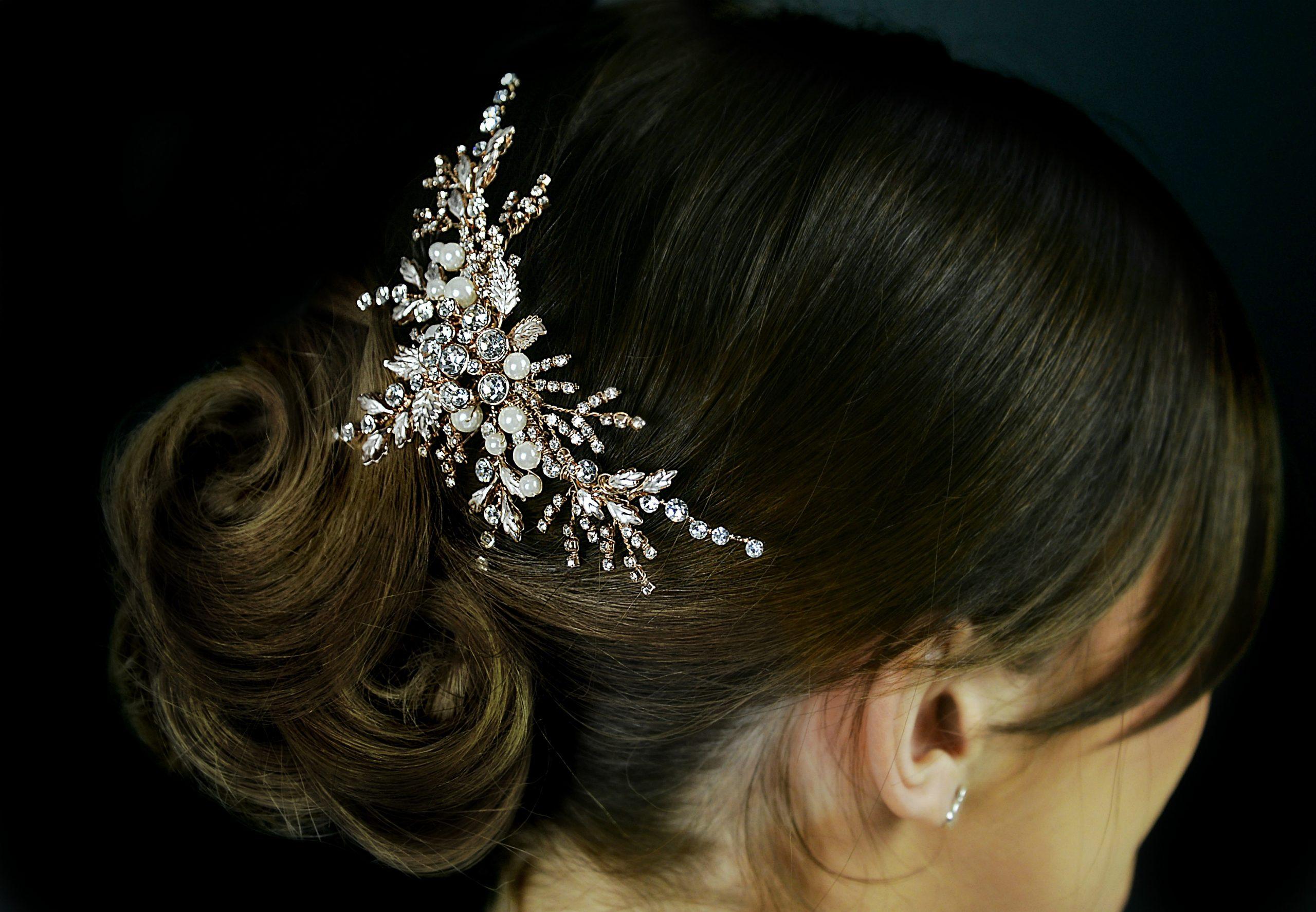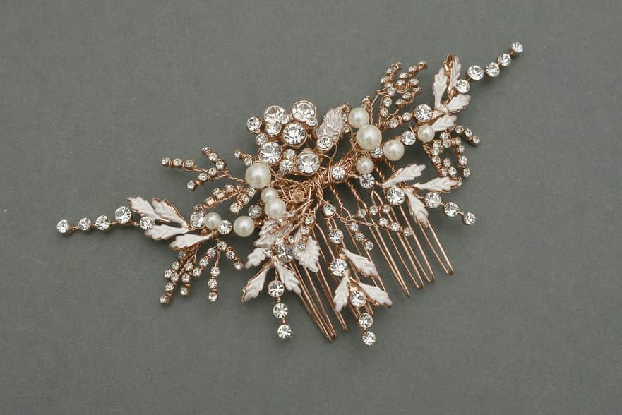 Rose Gold Hair Comb with Pearls and Diamantes.