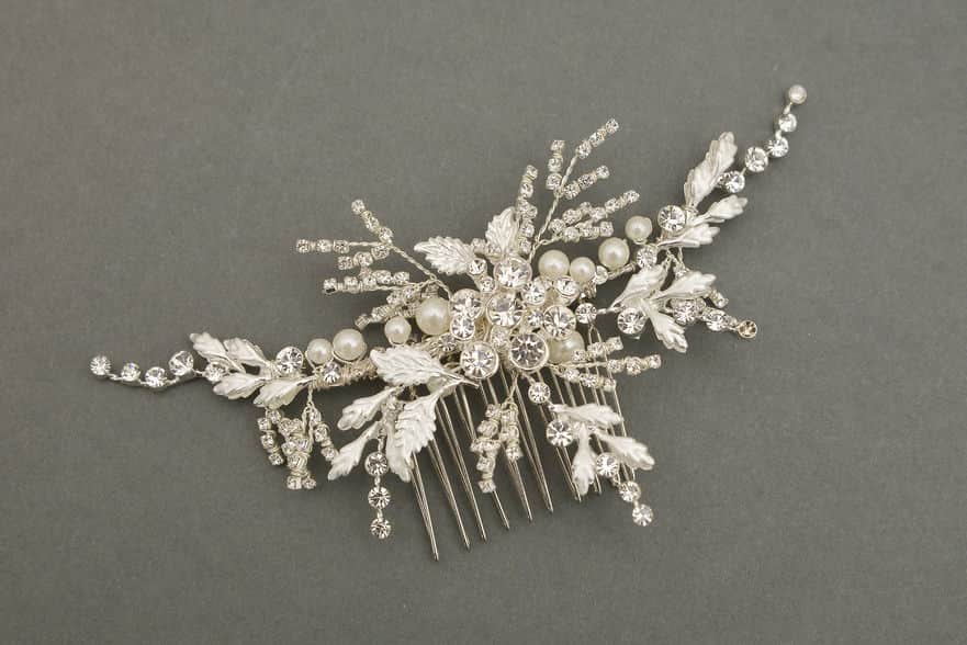 Silver Hair Comb with Pearls and Diamantes.
