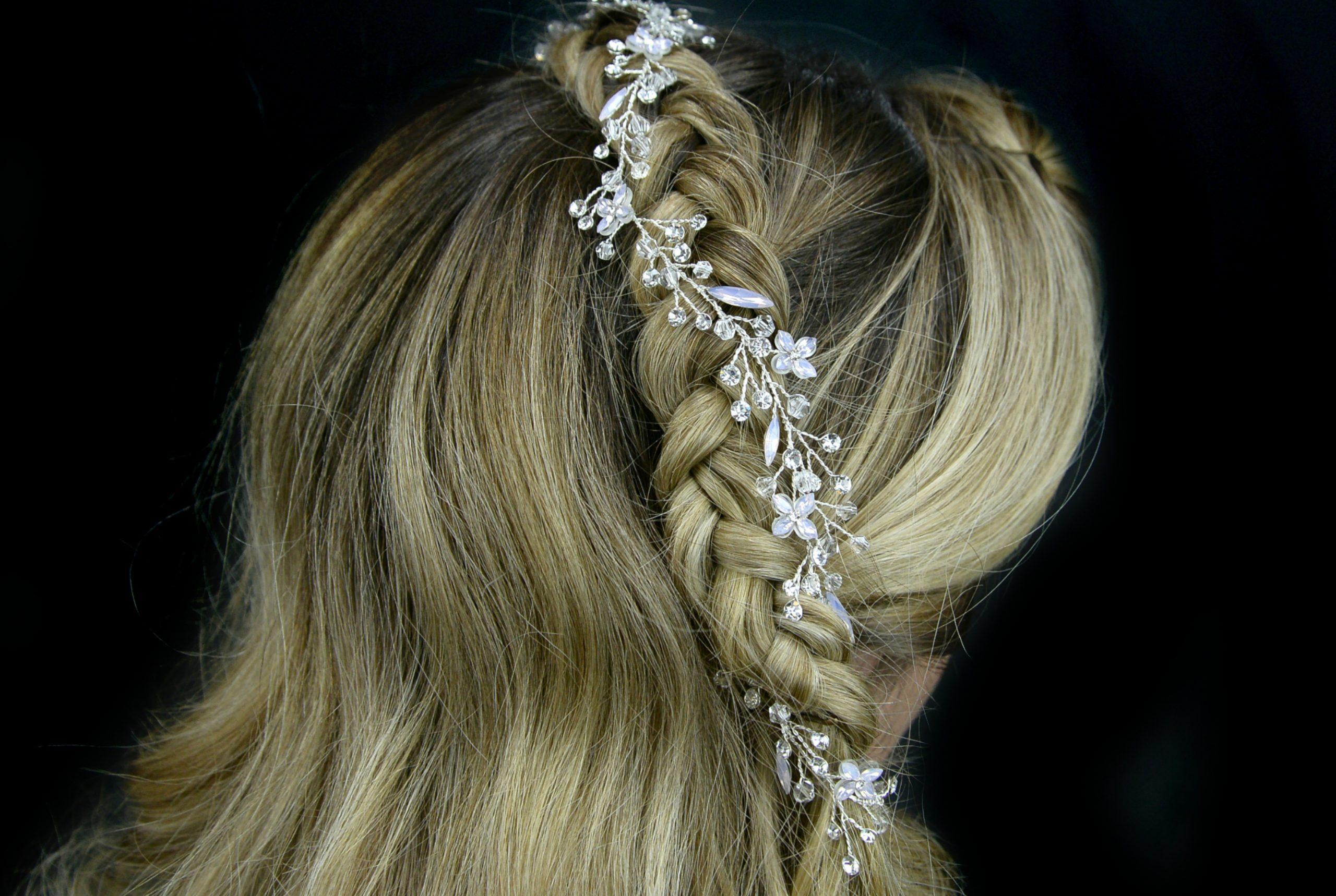 Stunning Opaque stones making up delicate flowers with added small diamantes and clear crystal beads for design hair vine.