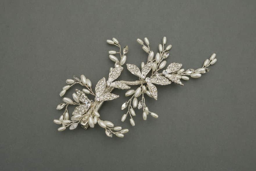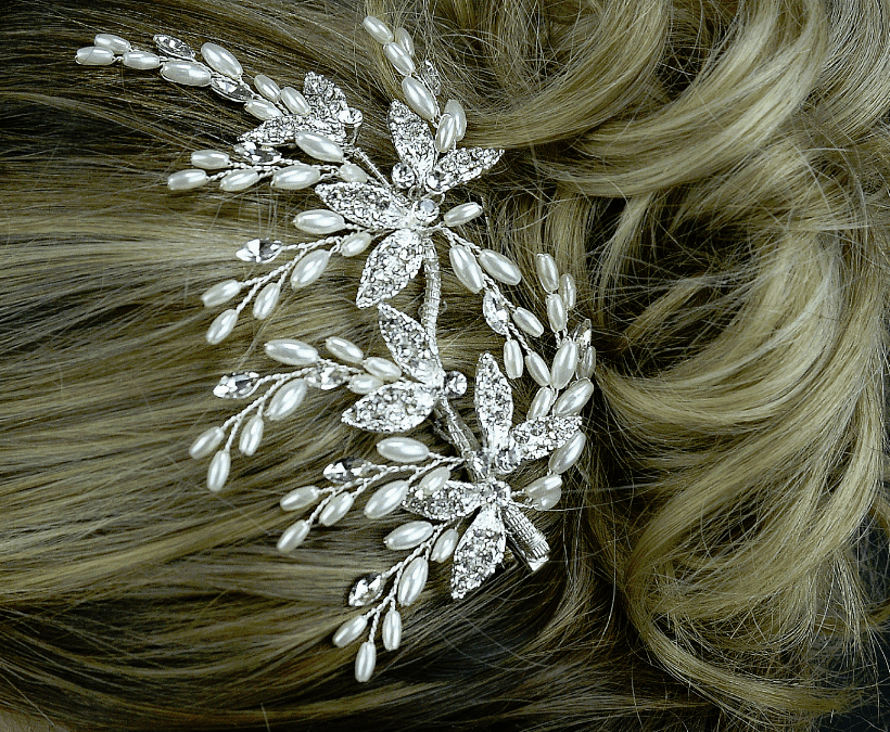 Beautiful Pearl and Marquise stone Silver Hair Clip.