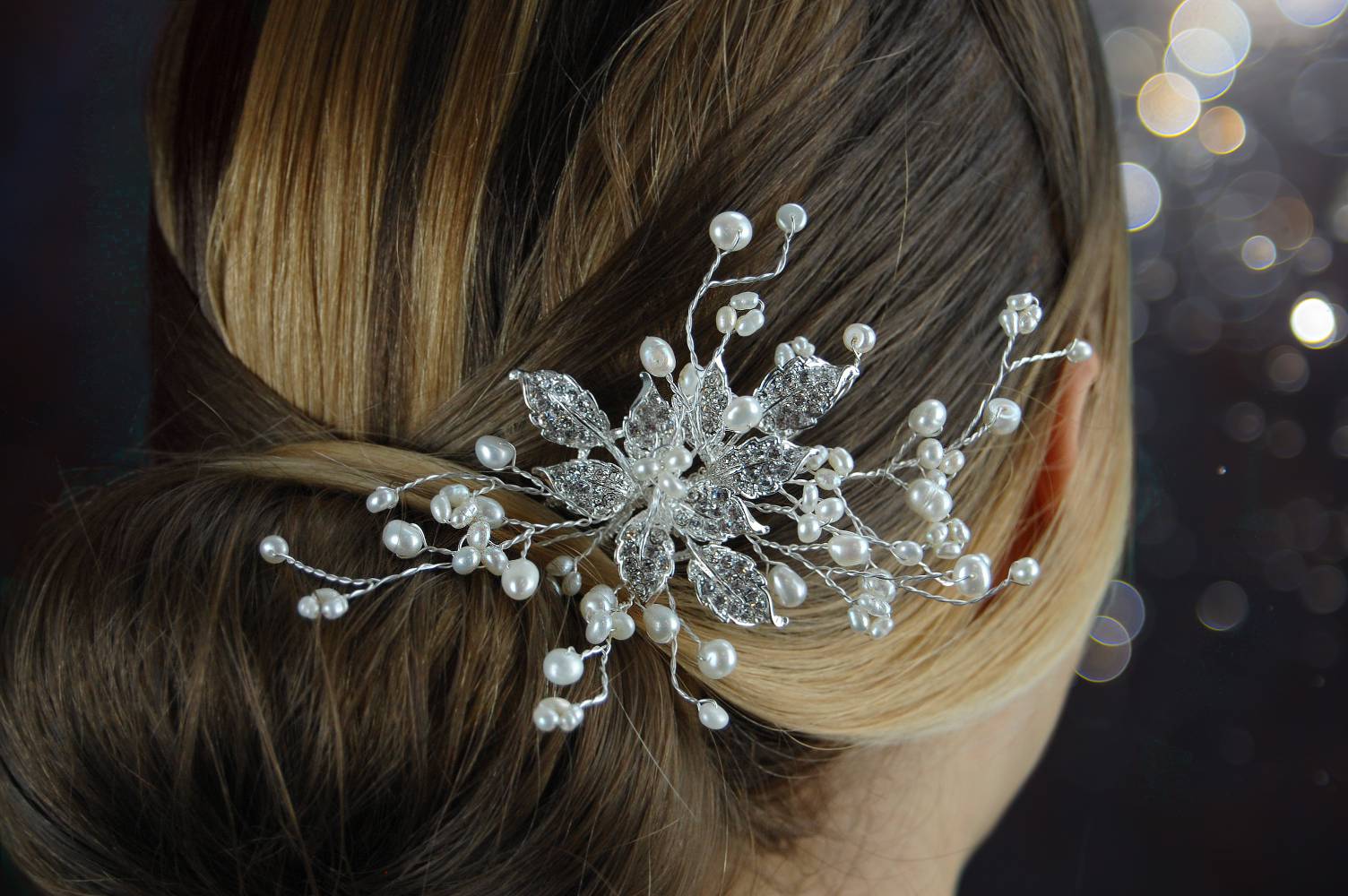 Beautiful Diamante leaf design making up a stunning central flower with pearls to decorated.