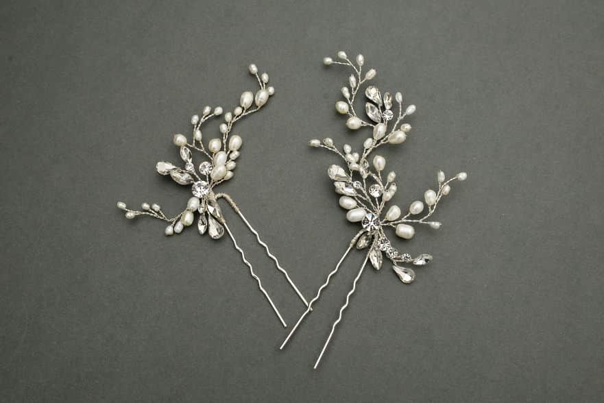 Set of beautiful hair pins, they are both slightly different in size, but are mad eup the same, with Diamantes and Pearls.