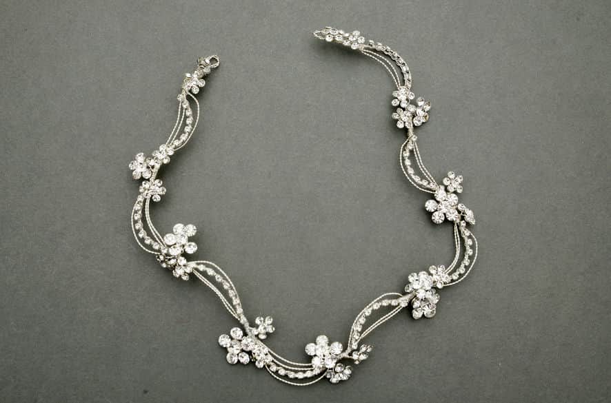 Stunning hair piece in a flower and swirl design, Diamantes making up a beautiful central cluster of flowers with diamante rows joining the flowers together, lovely statement piece.
