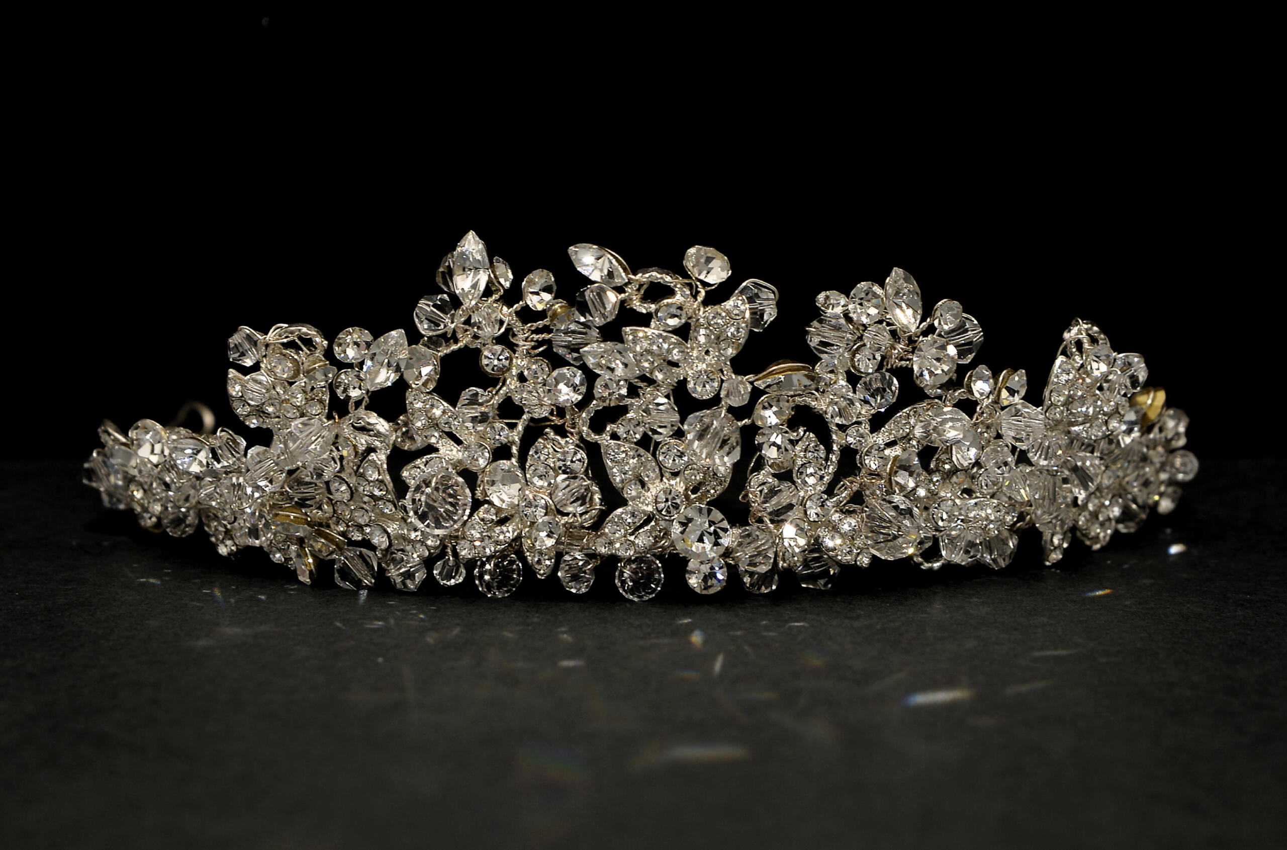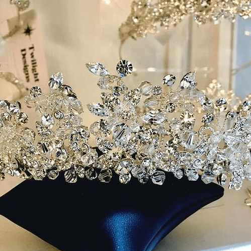 This is a gorgeous full crystal and clear beading tiara. At the tiaras highest point it measures 5.5cm tall. Full of phenomenal sparkle perfect for a brides big day.