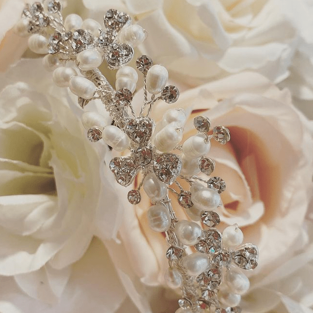 This tiara is made up of luxurious freshwater pearls and diamante.