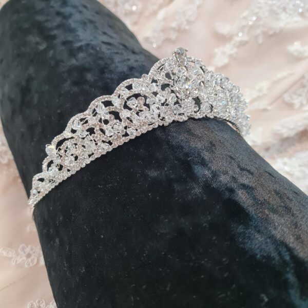 A traditional style tiara with a modern touch. This stunning mix of diamante & crystal bead is the perfect finishing touch for many bridal looks.