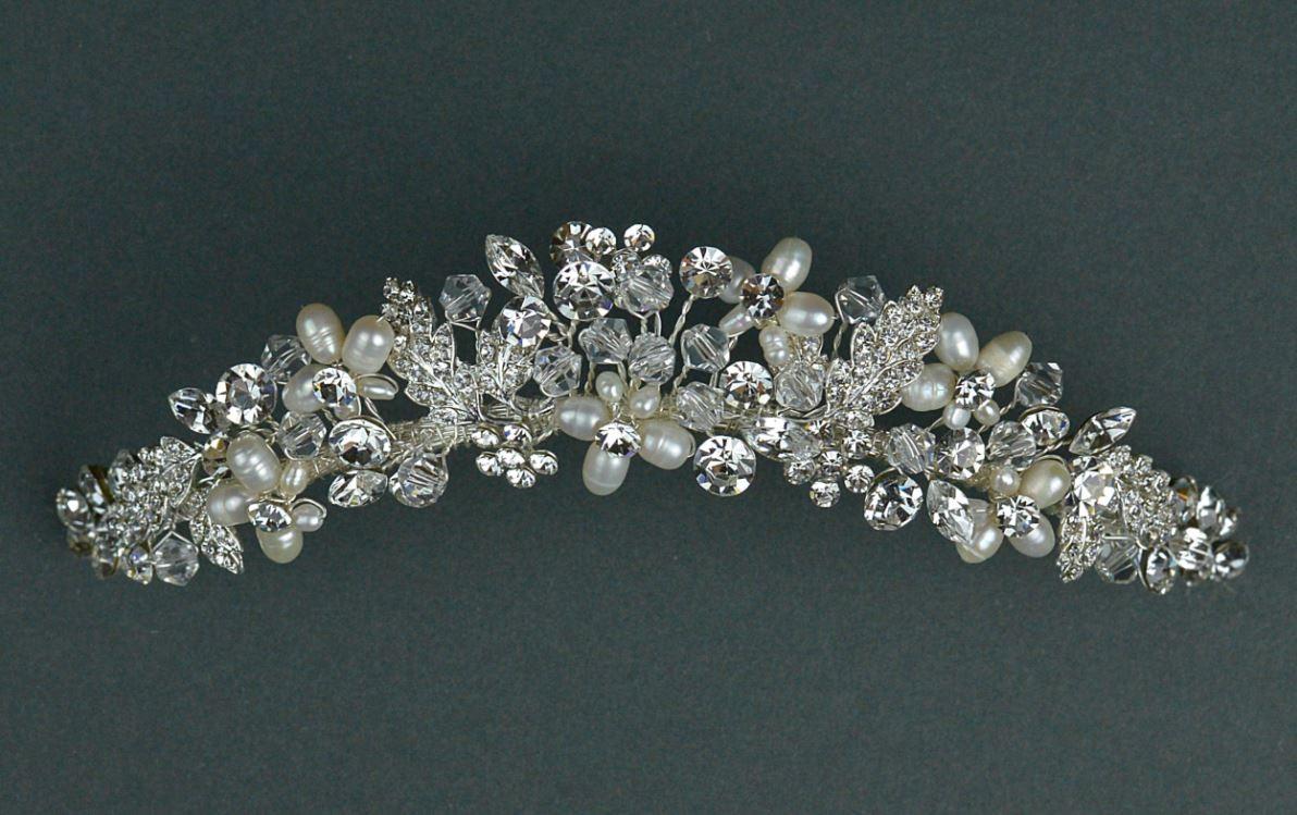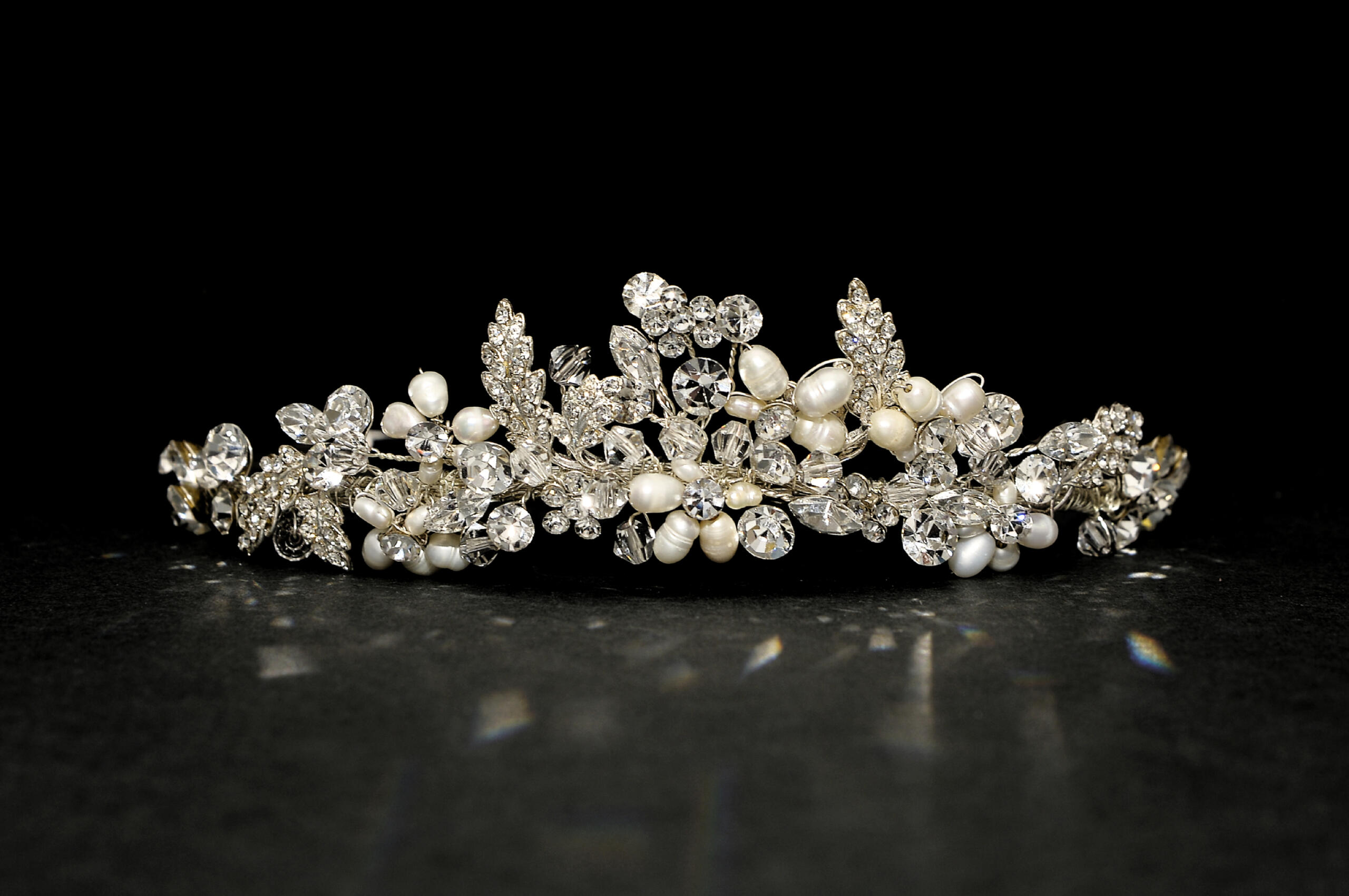 The perfect combination of pearls, Diamantes and floral motifs. A gorgeous tiara for the most special day.