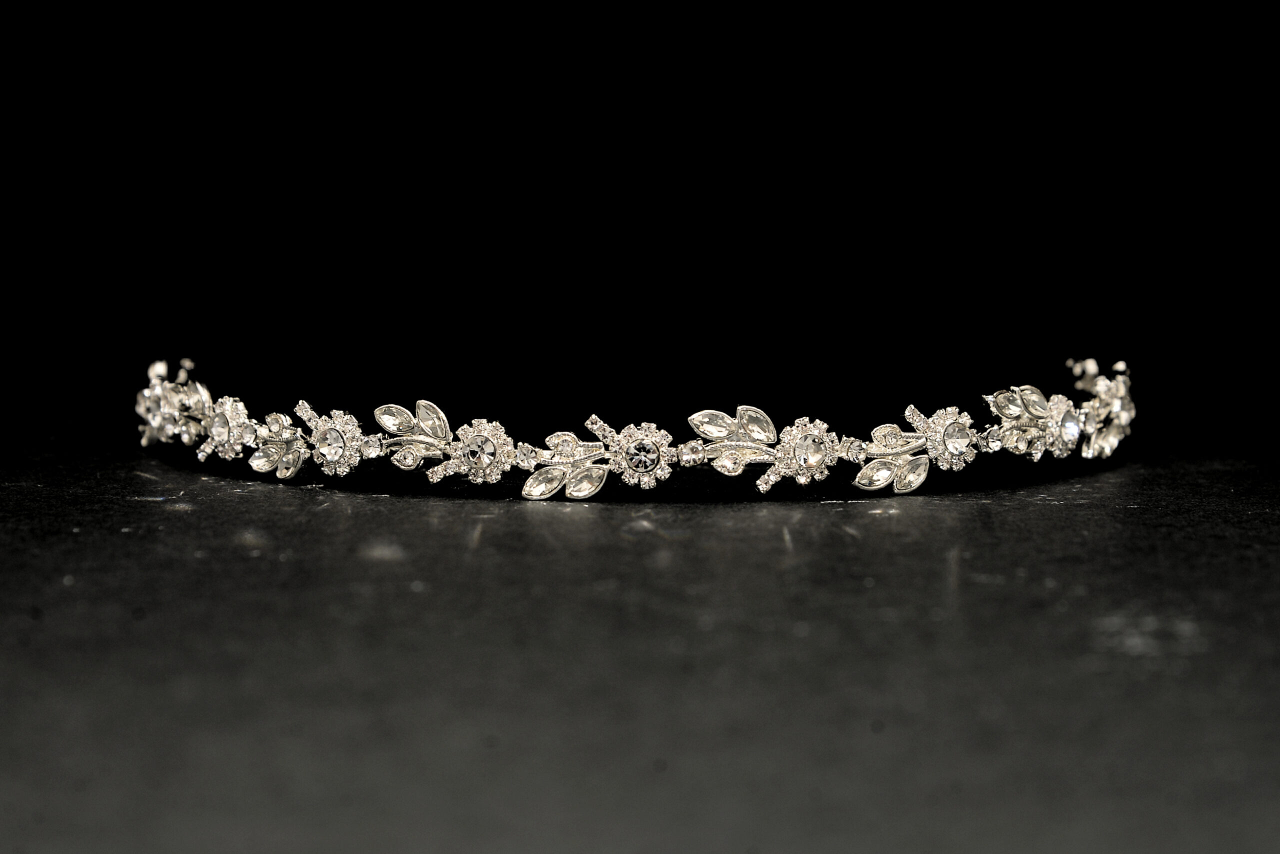 Beautiful delicate head band style piece made from tiny and large Diamantes, measures 0.5 inch at the widest point