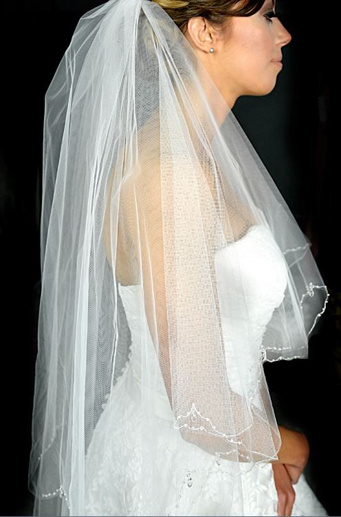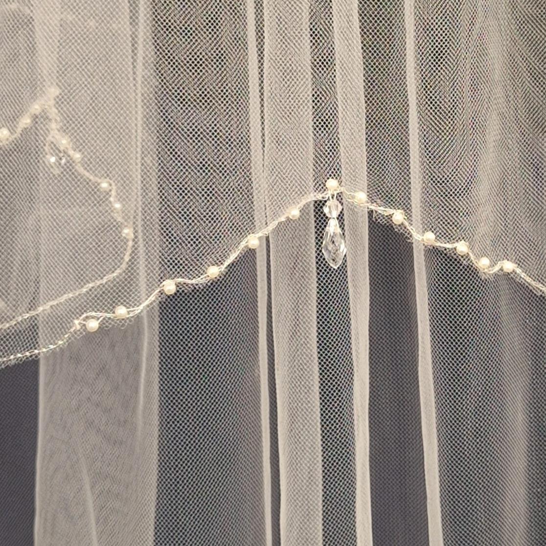 A stunning scallop edged veil with Diamante and Clear Crystal droplets.