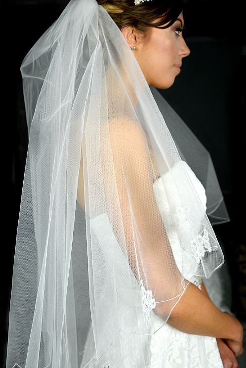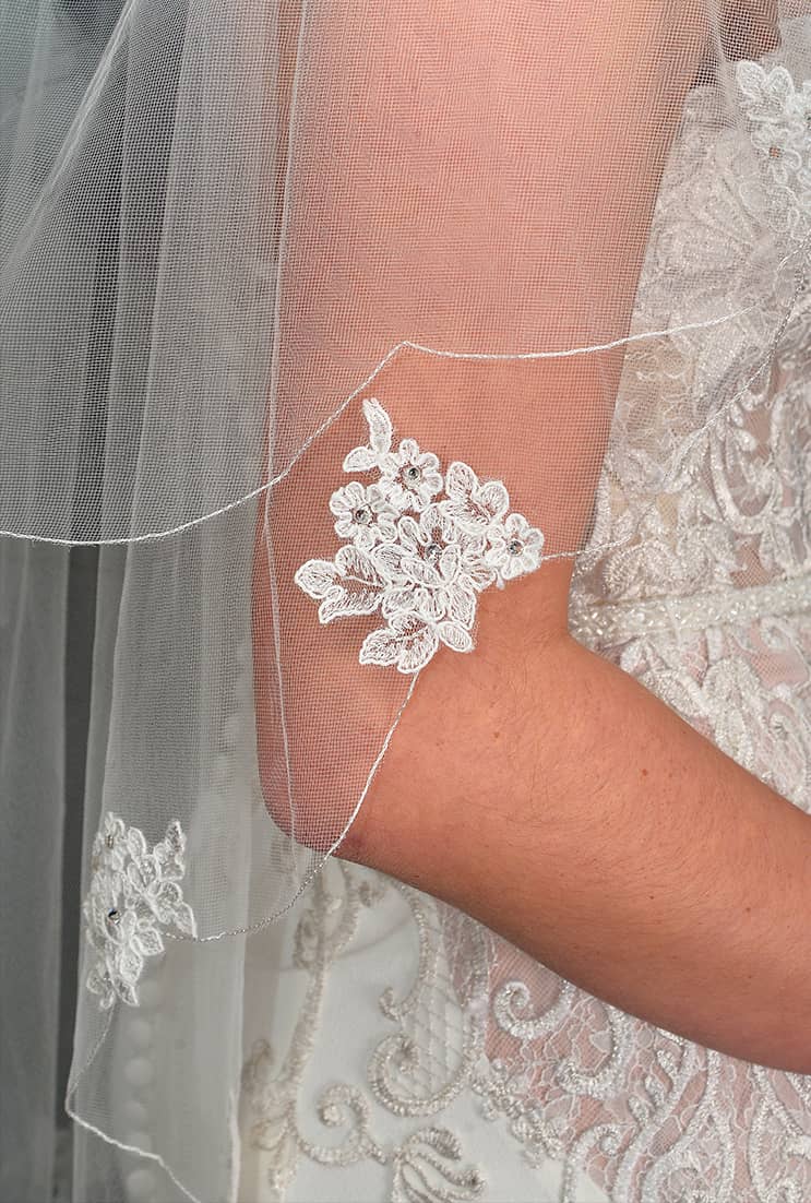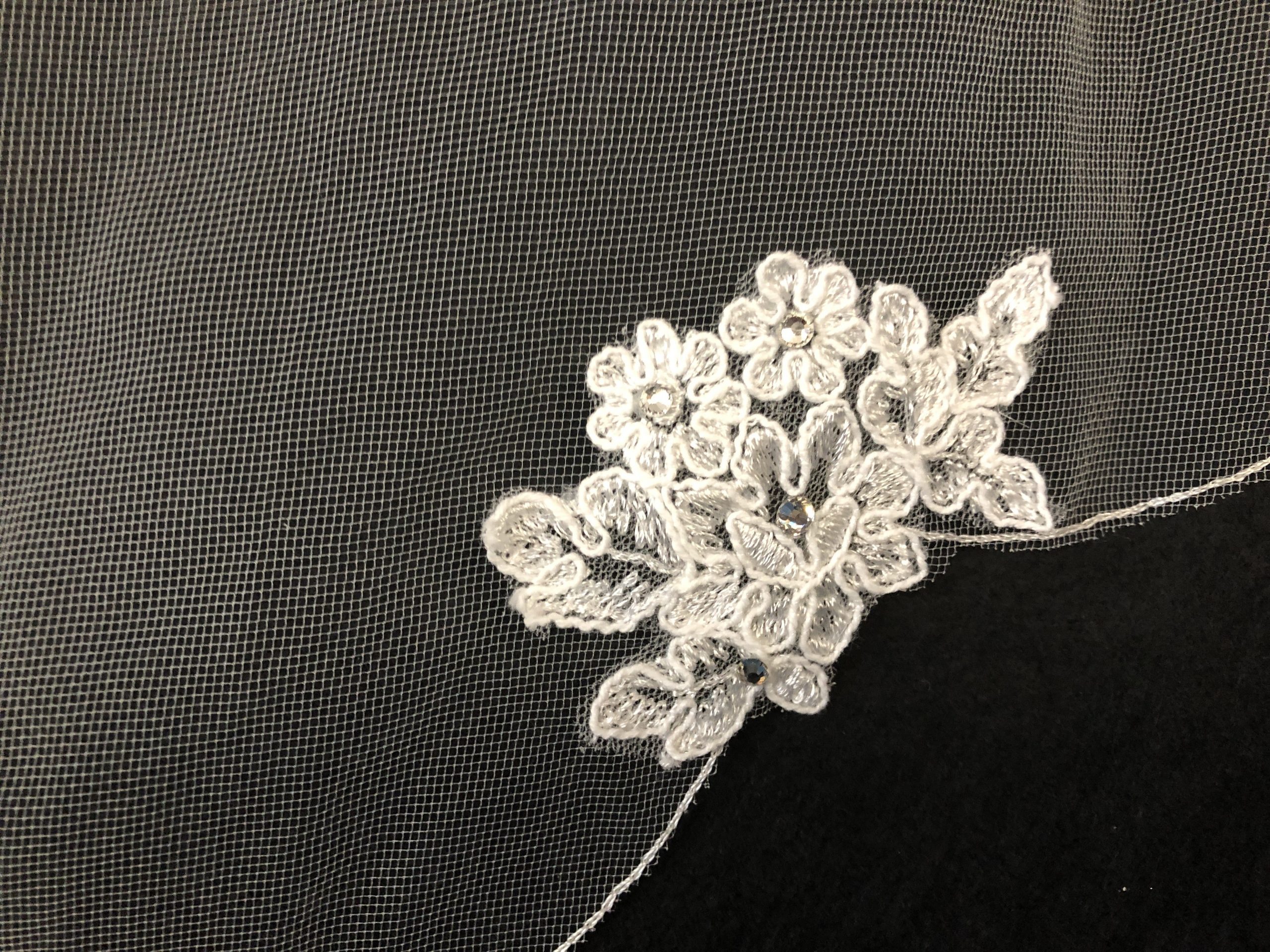 A stunning lace veil, the lace is placed at the highest points of the scalloped edge.