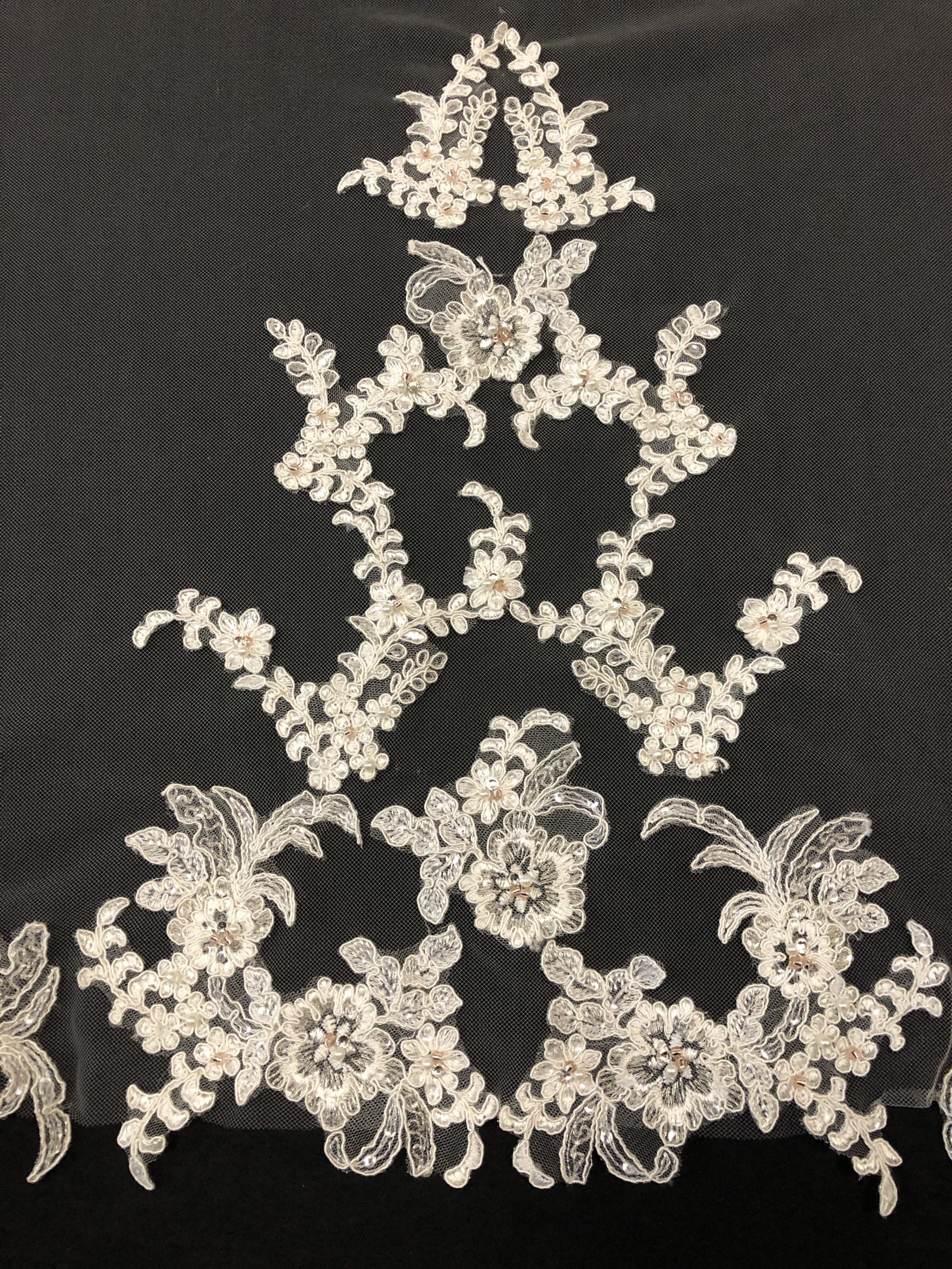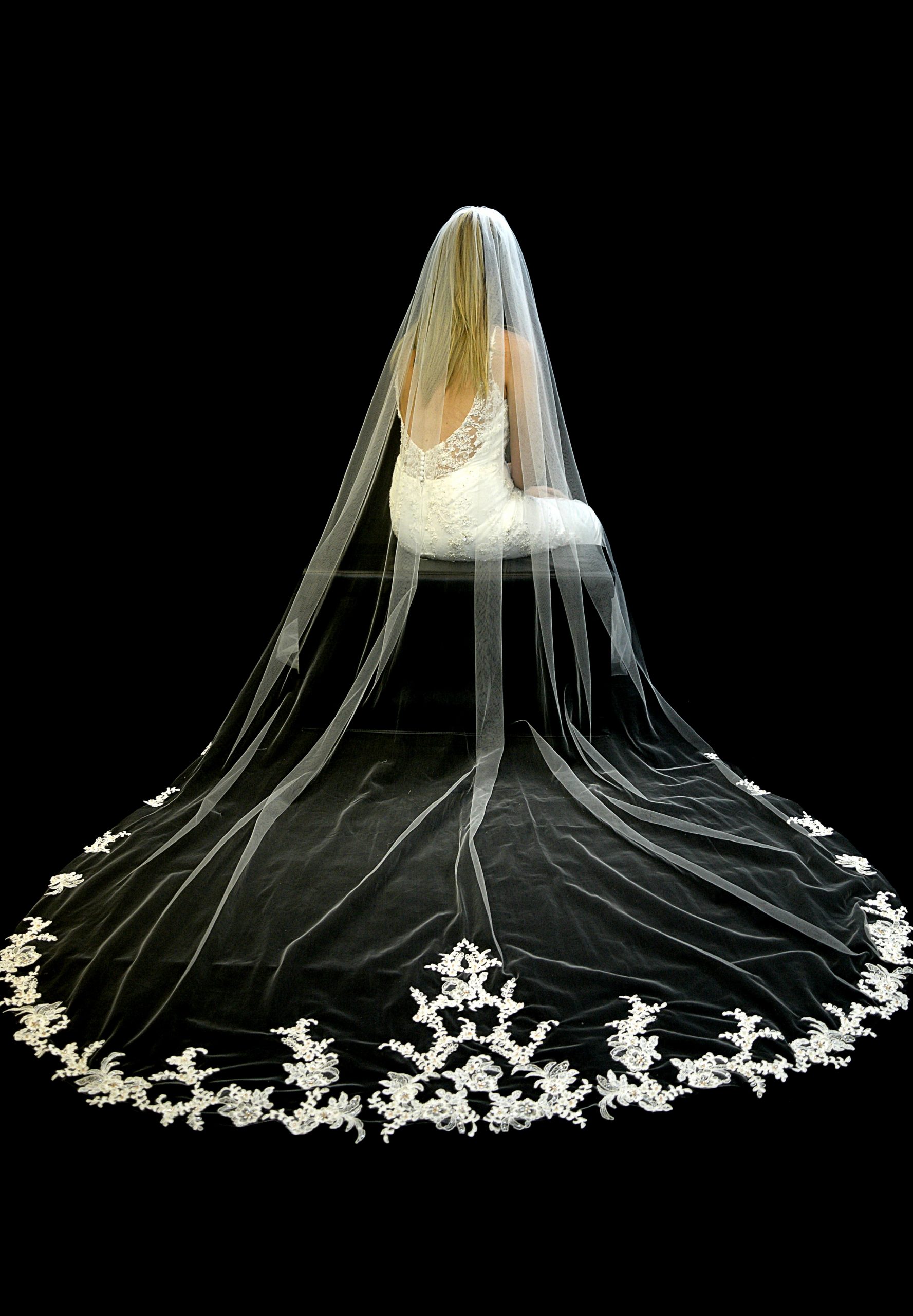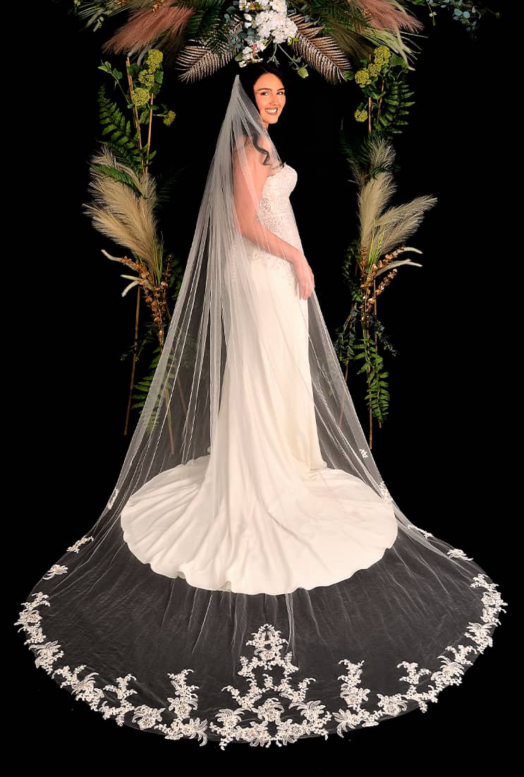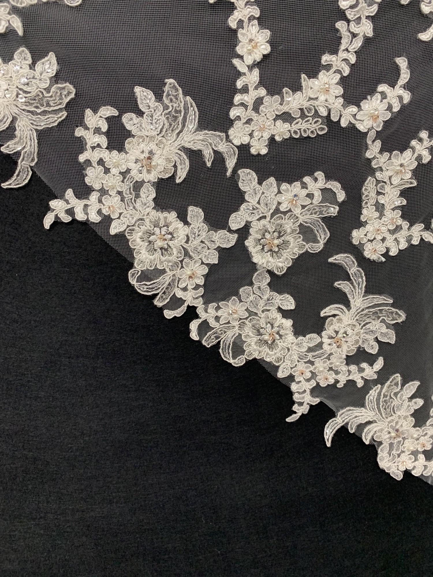 Veil available in 126″ only. Exact measurement is 108″ Available in Ivory only. Available in 1 tier only. CHAPEL – 126” = 100” 1T