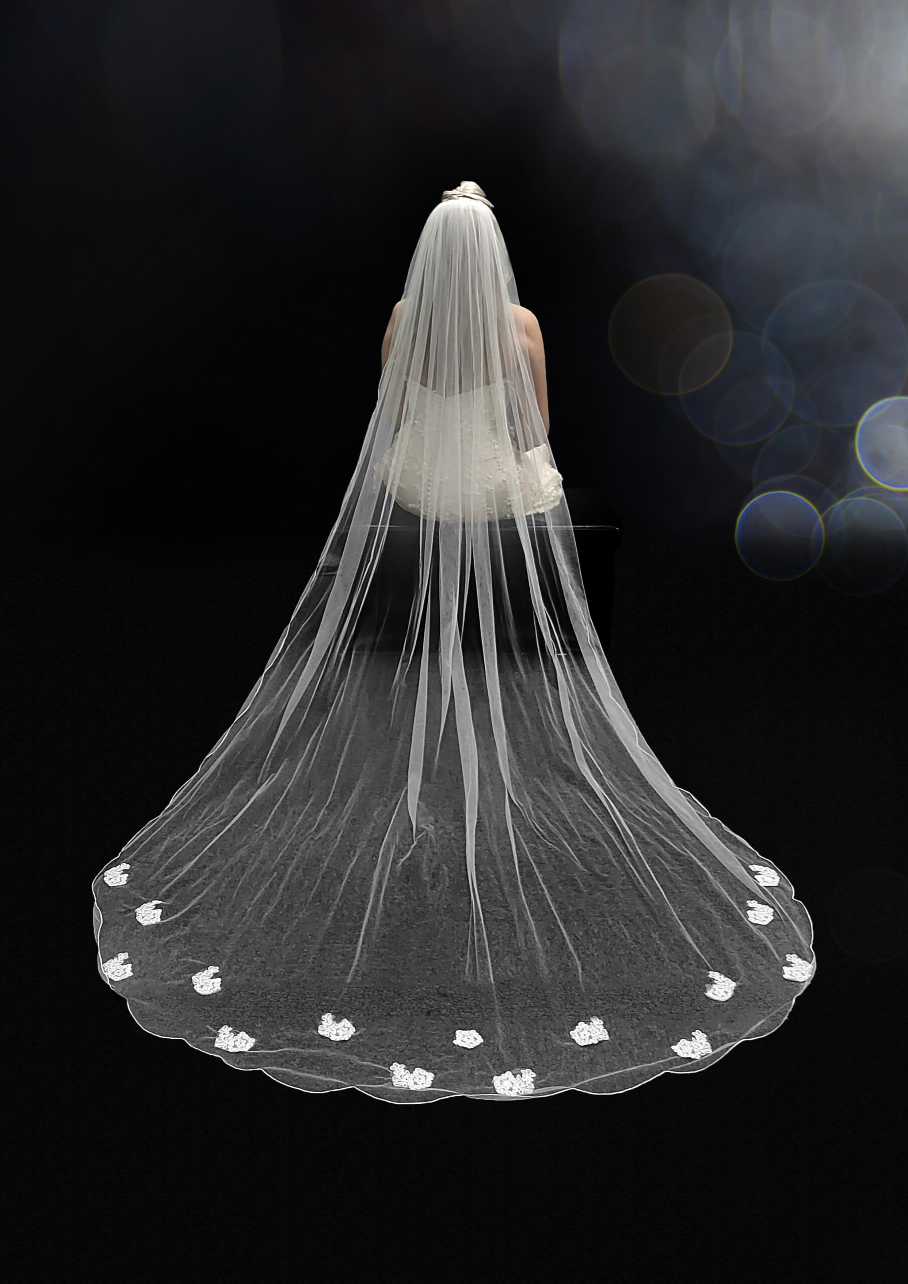 An elegant veil with applique lace placed around the edging.