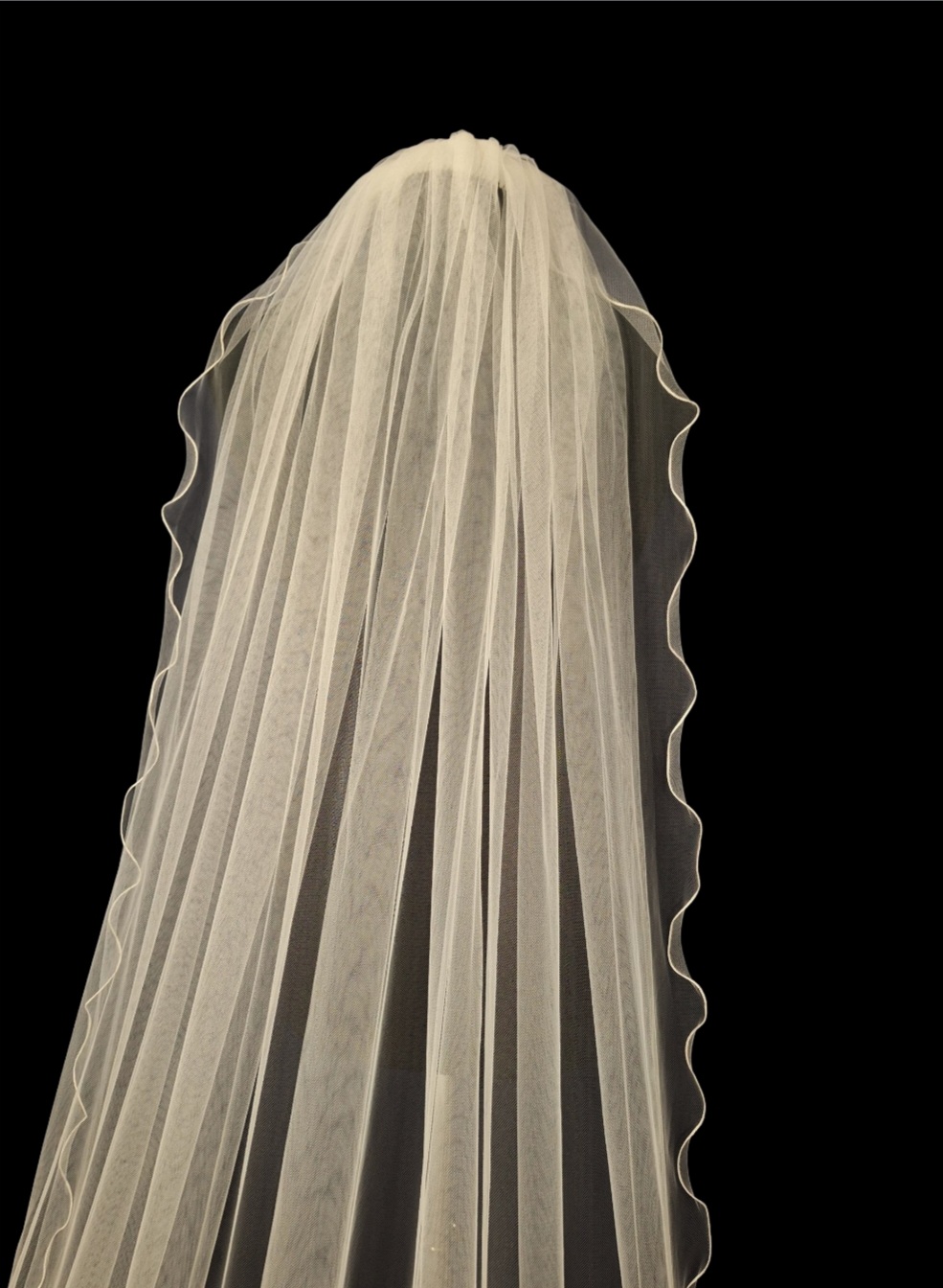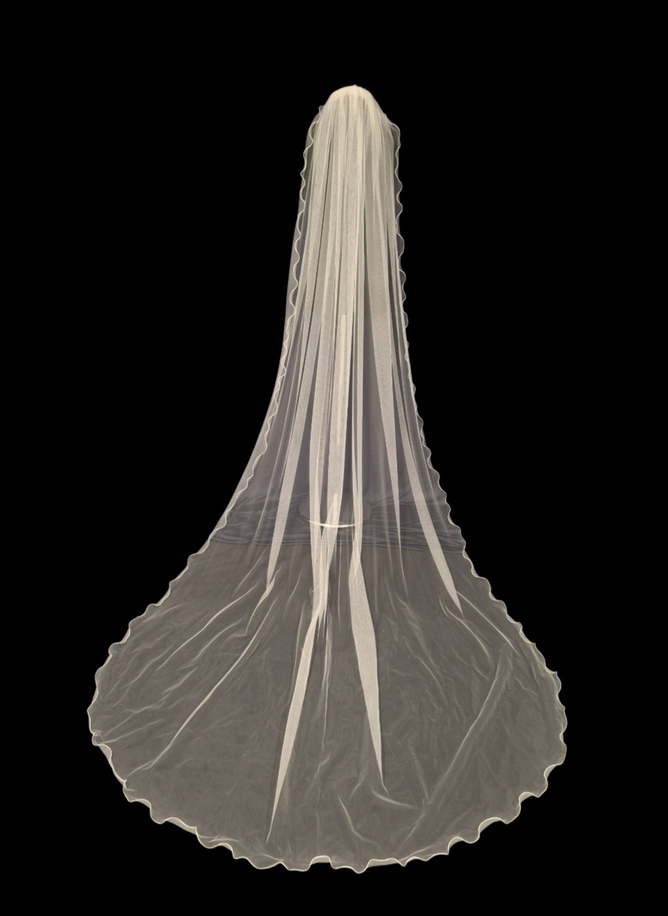 A Plain veil with a curly pencil edge, giving a delicate soft classic look.