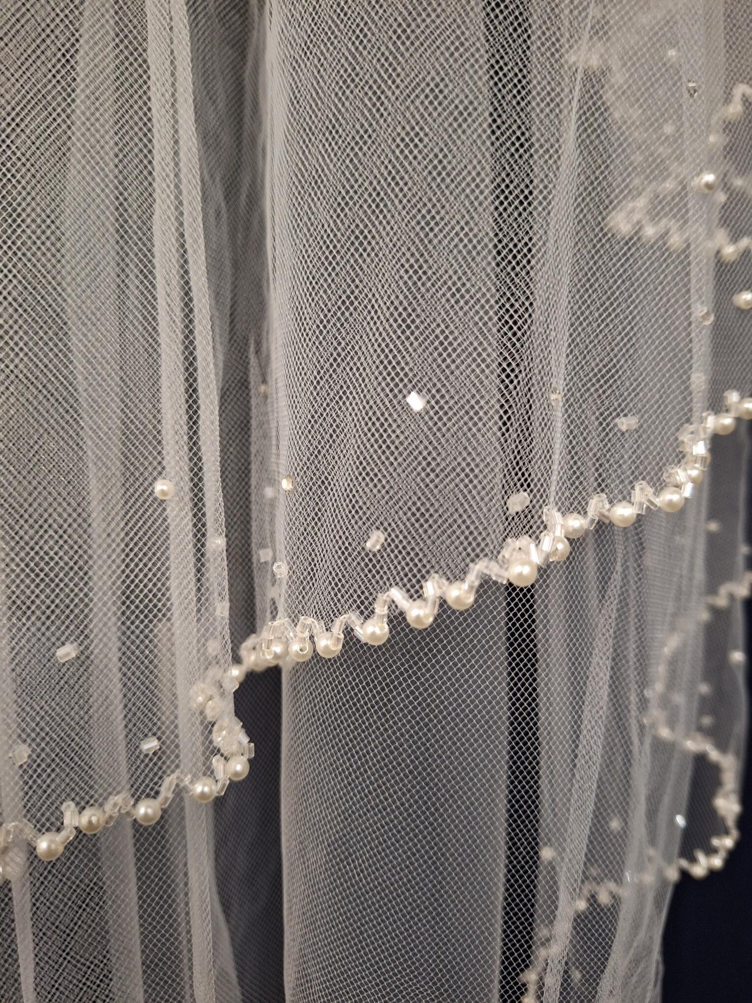 Stunning Zigzag pattern finished with Bugle beads and pearls.