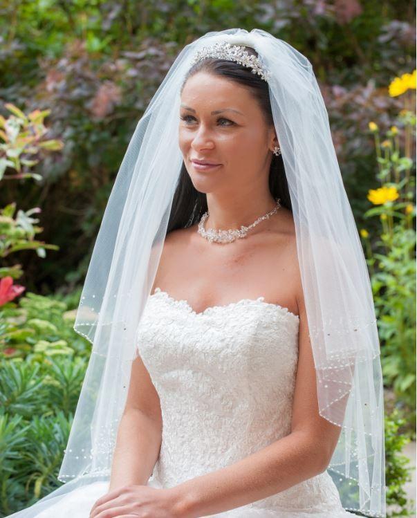 From the centre this tiara is featured with crystals and pearls and the theme travels along the tiara.