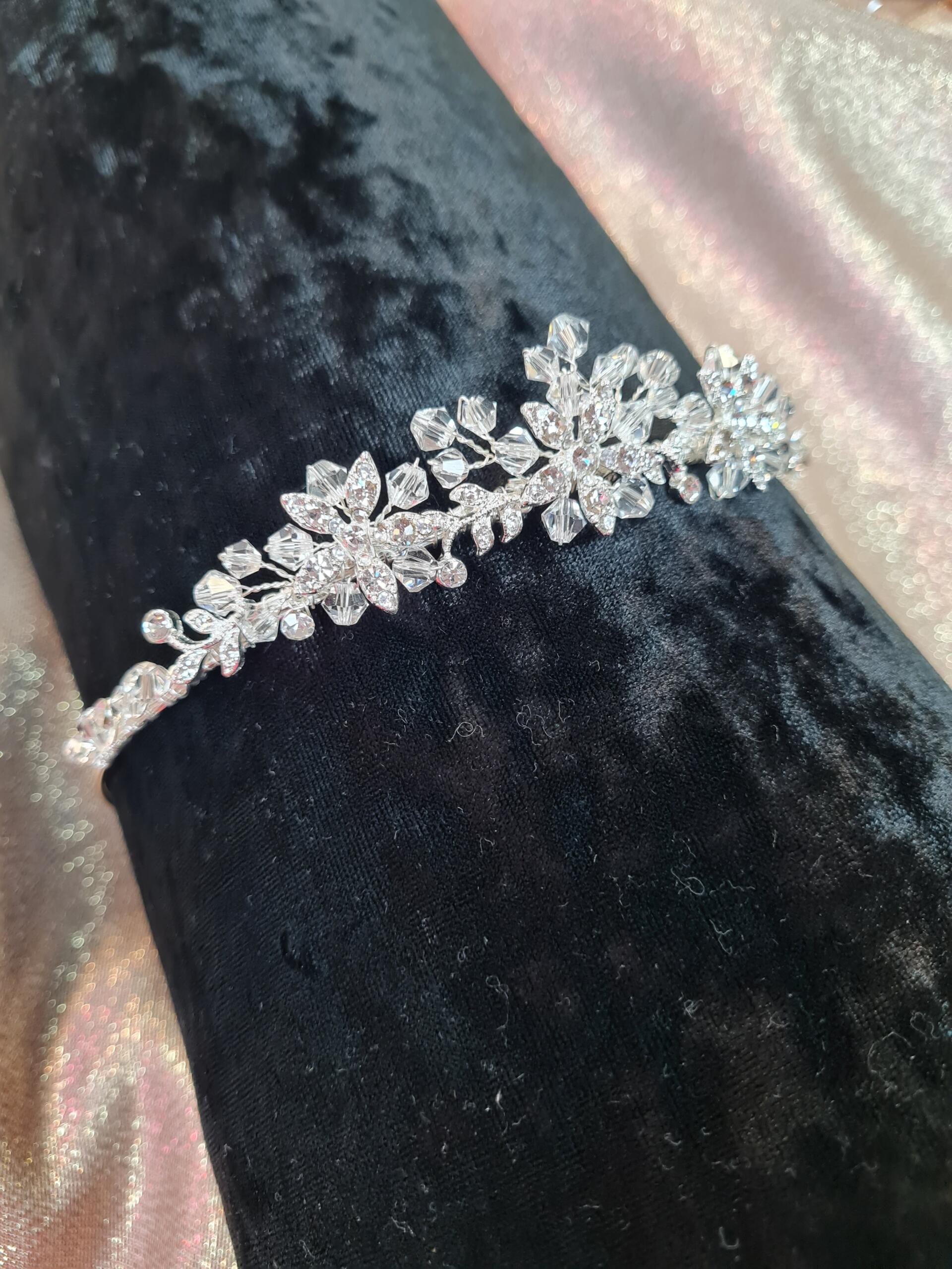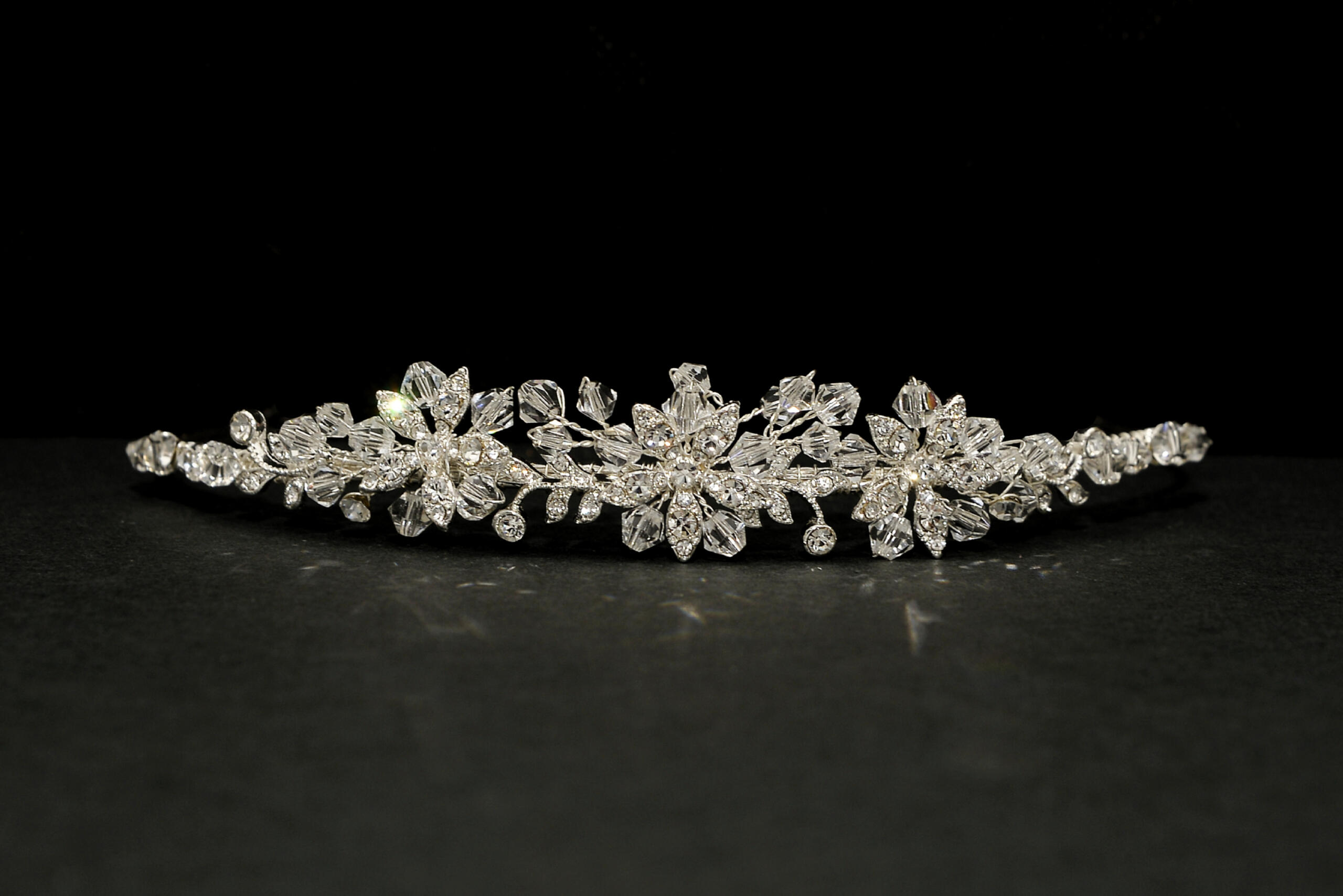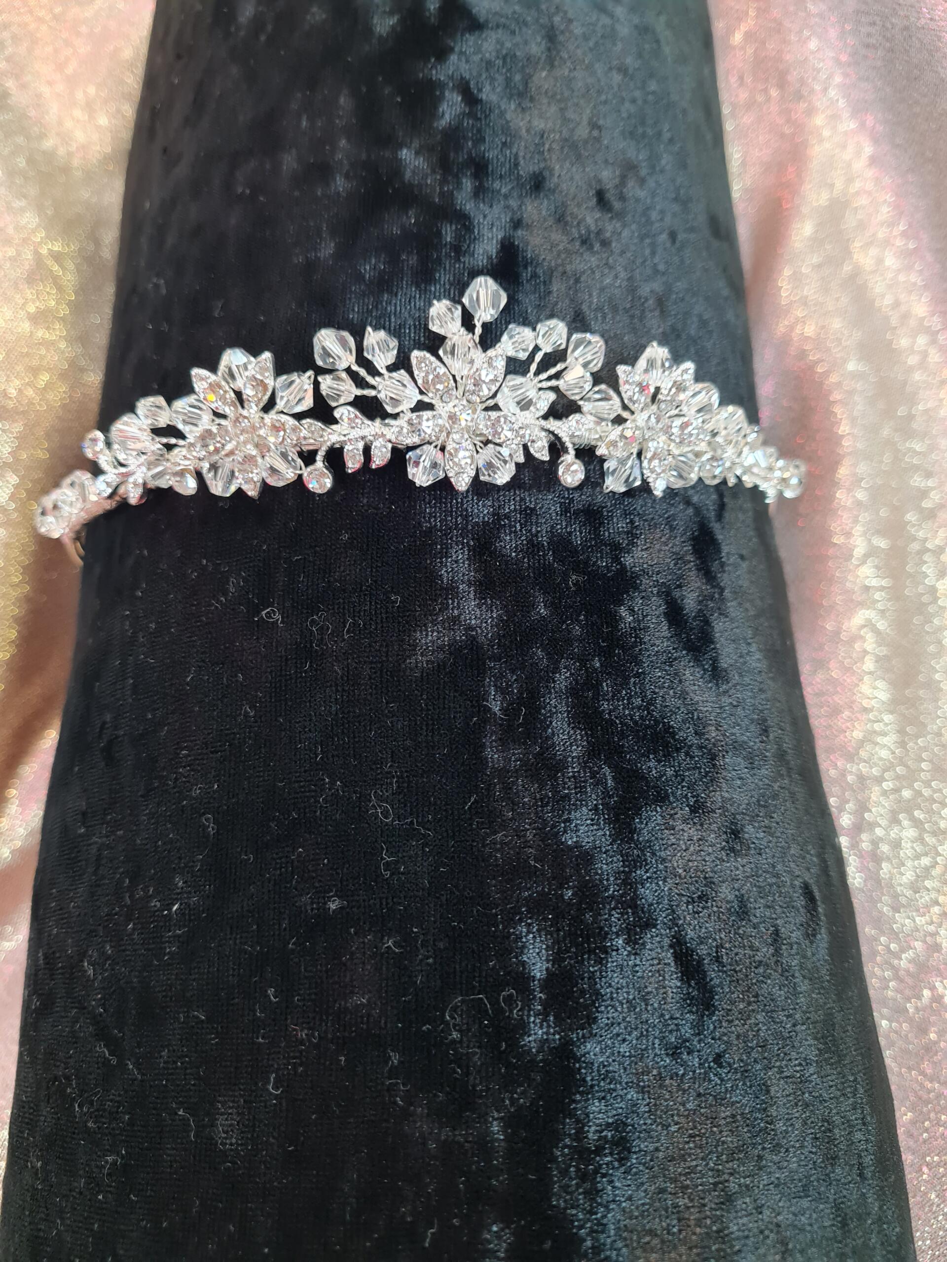 Stunning diamante and crystal beaded tiara, delicate but gives the wow factor, 1.5″ at the highest point.