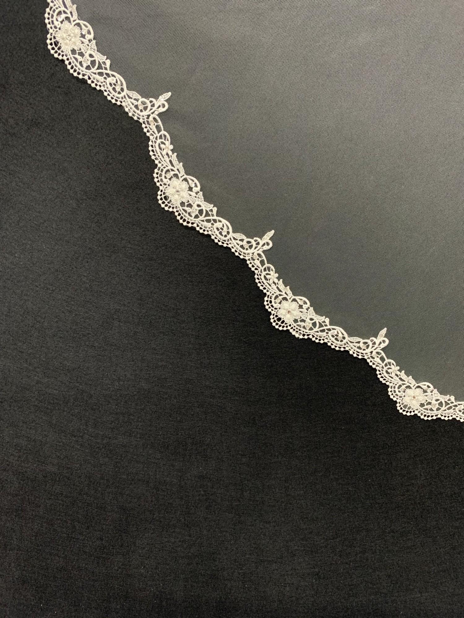 Stunning lace edged veil with added Clear Crystals in the lace for extra decoration.