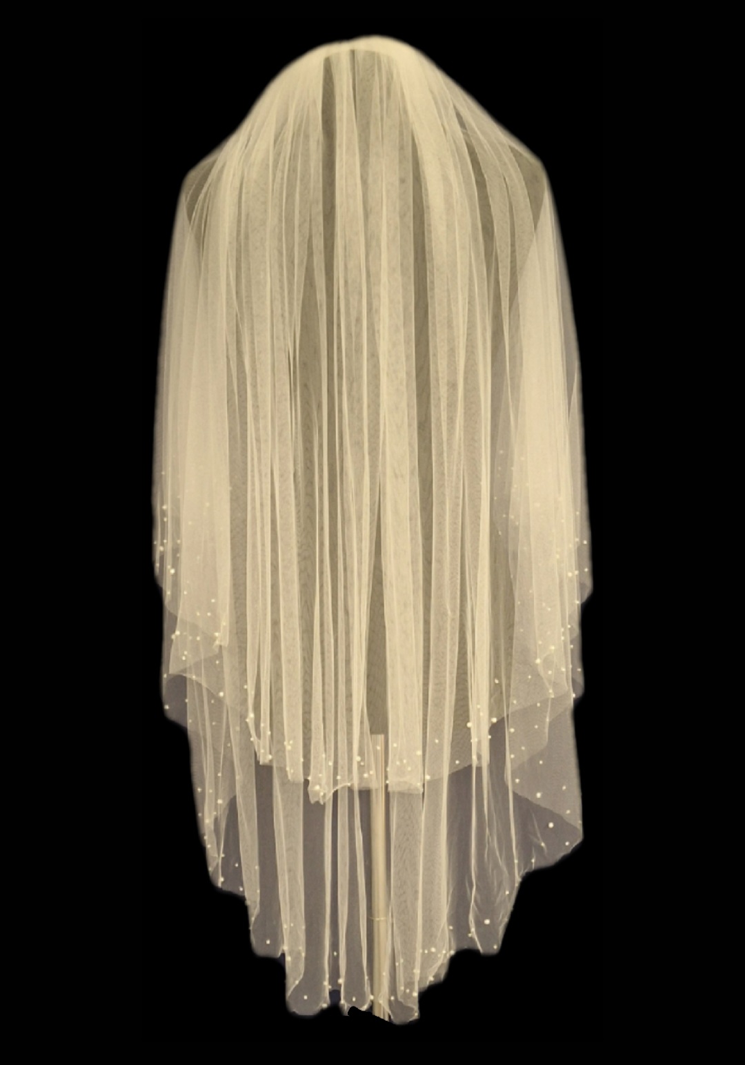 A stunning veil with a scattered Pearl edge, a variety of different sized pearls.