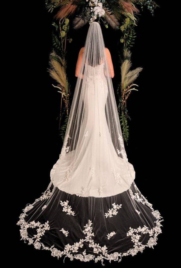 The veil of all veils, this is an absolutely stunning veil full of lace motif, delicately placed all over the veil.