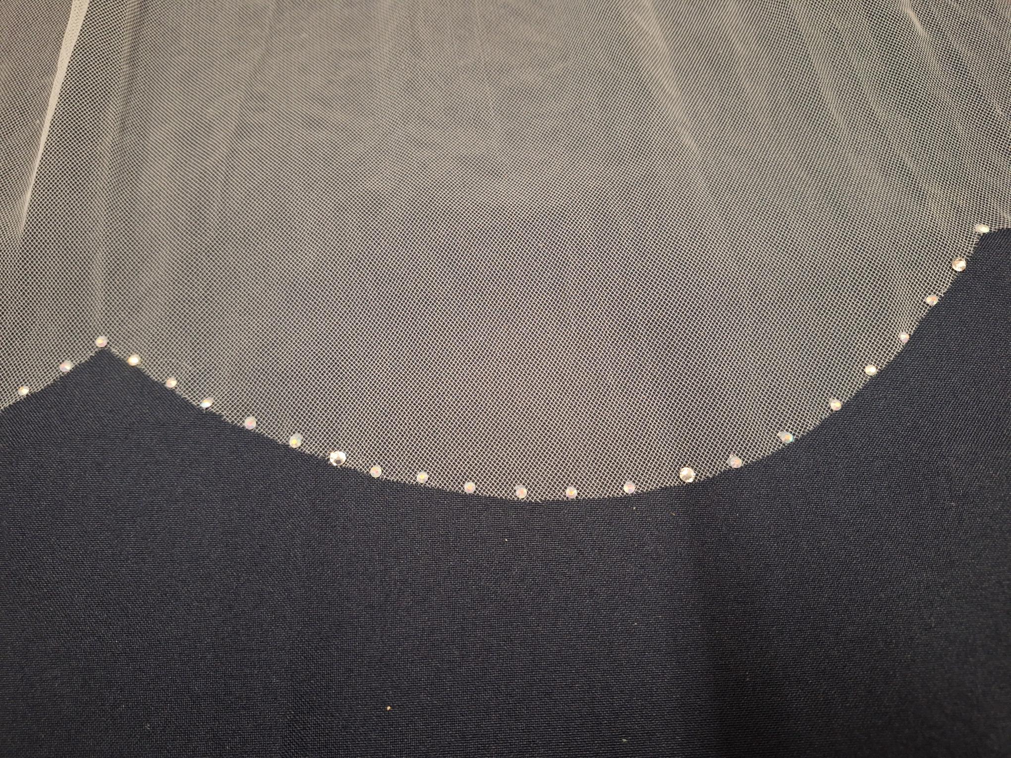 Elegant raw edge cut scallop veil with a decorated edge of Crystal beads spaced singuly but evenly.